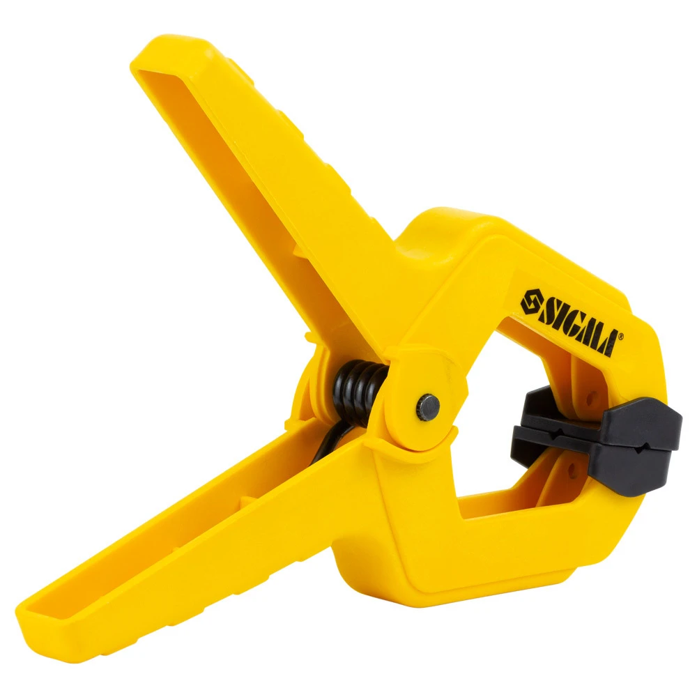 Струбцина пружинна 75мм SIGMA (4244851) застосовується для фіксації та утримання заготовок при виконанні складальних, столярних та слюсарних робіт. Пружинна струбцина працює за принципом прищіпки і має в своїй конструкції пружину, яка і створює нерегульоване затискне зусилля. На губках є накладки, які запобігають появі слідів на м'яких матеріалах. Відрізняється легкістю і зручністю, всі маніпуляції при роботі з нею виконують однією рукою. Забезпечує стабільне затискне зусилля. Оптимальна для делікатної фіксації деталей, що склеюються.