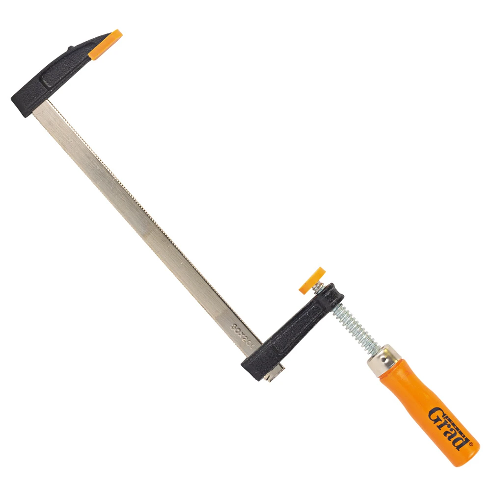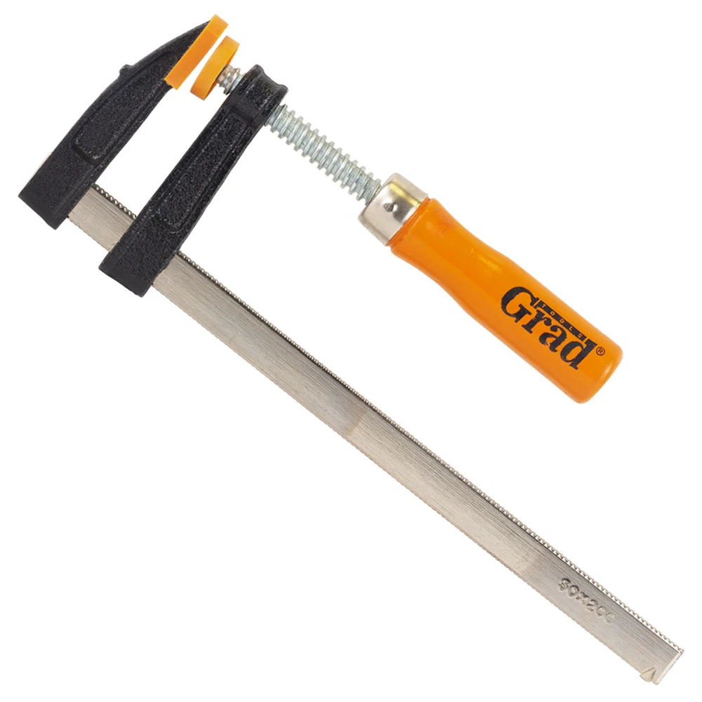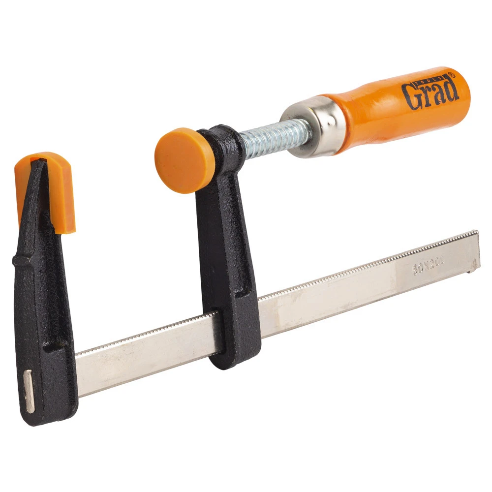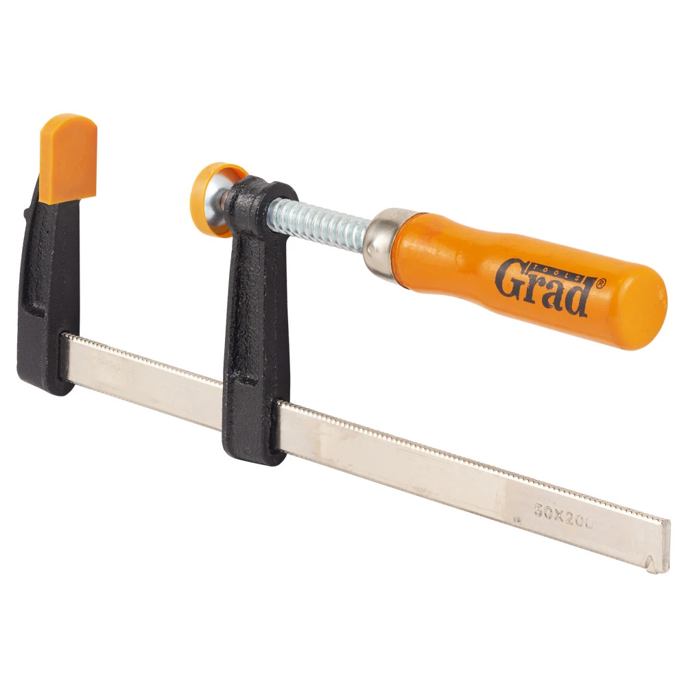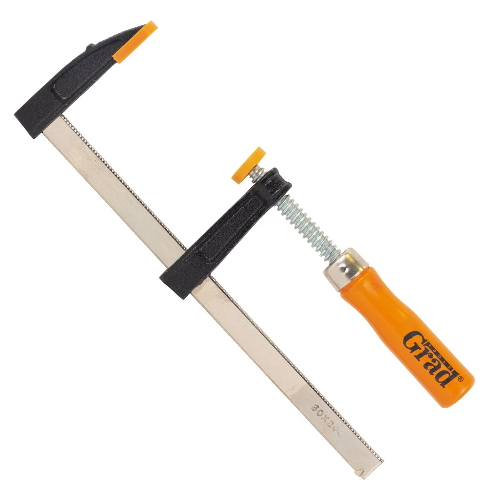 Струбцина столярна тип F 200×50мм GRAD (4242625) призначена для фіксації та утримання заготовок при виконанні складальних, столярних та слюсарних робіт.