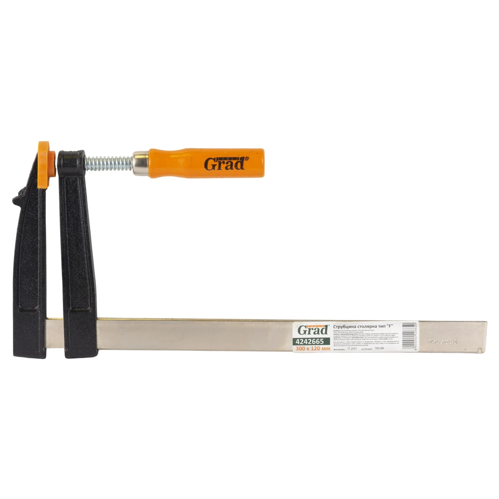 Струбцина столярна тип F 300×120мм GRAD (4242665) призначена для фіксації та утримання заготовок при виконанні складальних, столярних та слюсарних робіт.