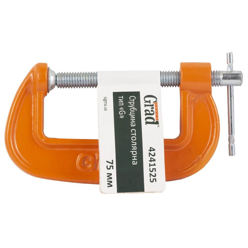 Струбцина столярна тип G 75мм GRAD (4241525) призначена для фіксації та утримання заготовок при виконанні складальних, столярних та слюсарних робіт.