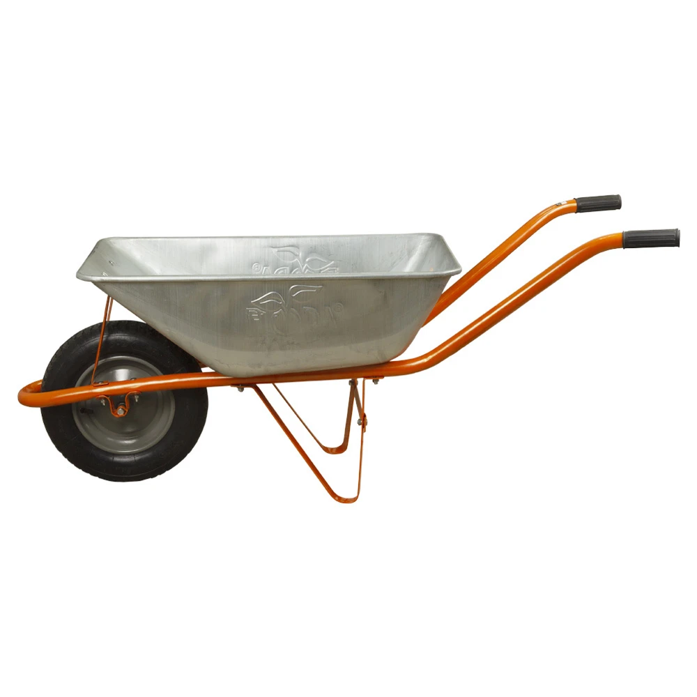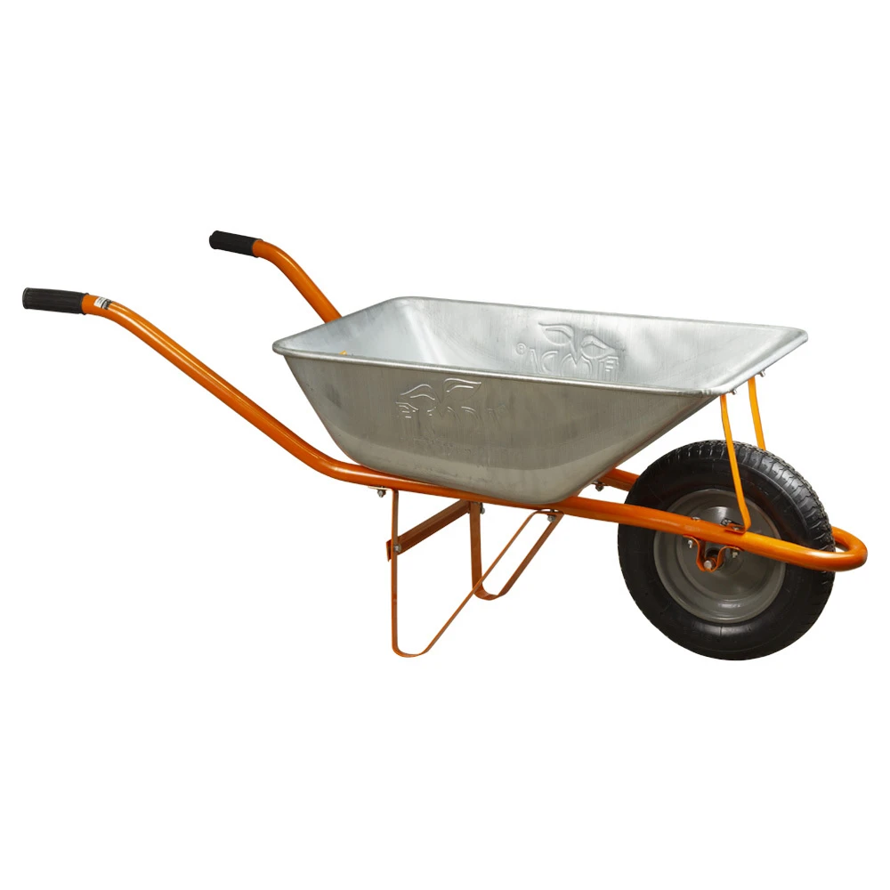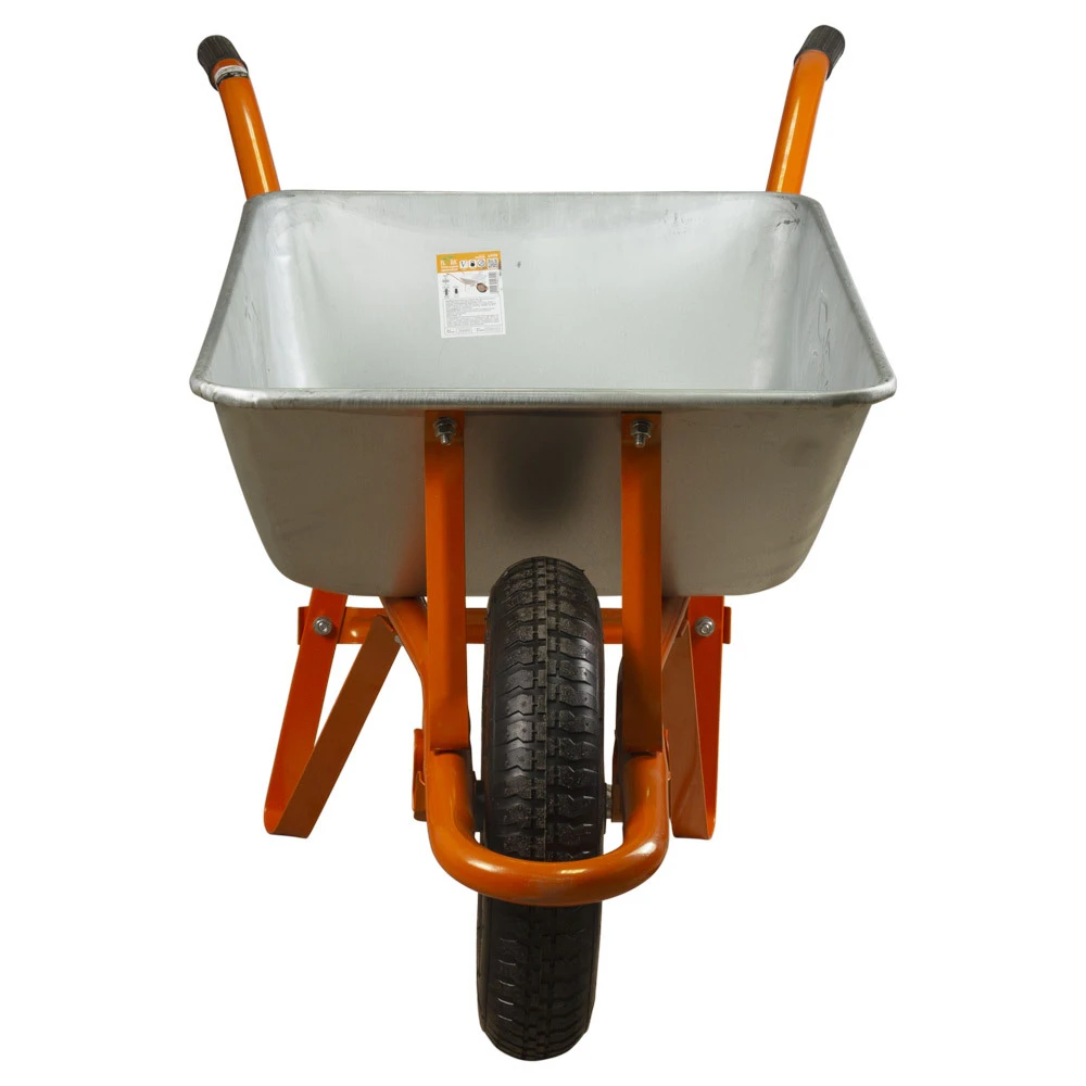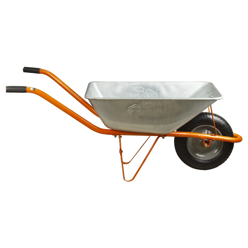 Тачка садова одноколісна 58л 120кг колесо 14" FLORA (5055324) необхідна при виконанні будівельних та садово-городніх робіт для перевезення будівельних матеріалів, таких як щебінь, пісок, цемент, глина, сипучих матеріалів.
