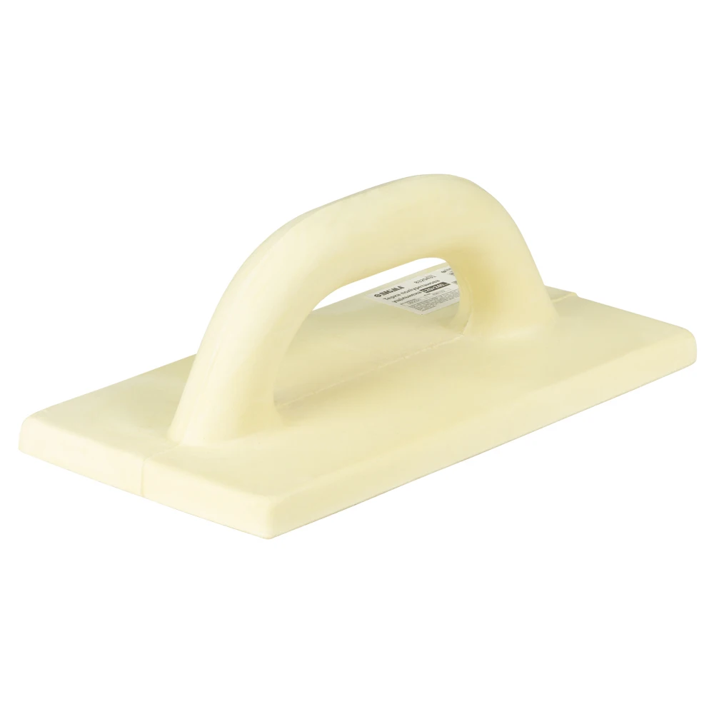 Терка має шорстку підошву з рукояткою. Корпус виготовлений з поліуретану - він легкий, з низьким ступенем стирання. Оснащена закругленою замкнутою рукояткою, яка не ковзає в руці під час роботи і підвищує зручність використання. Що в поєднанні з низькою вагою зменшує втому від тривалих робіт.