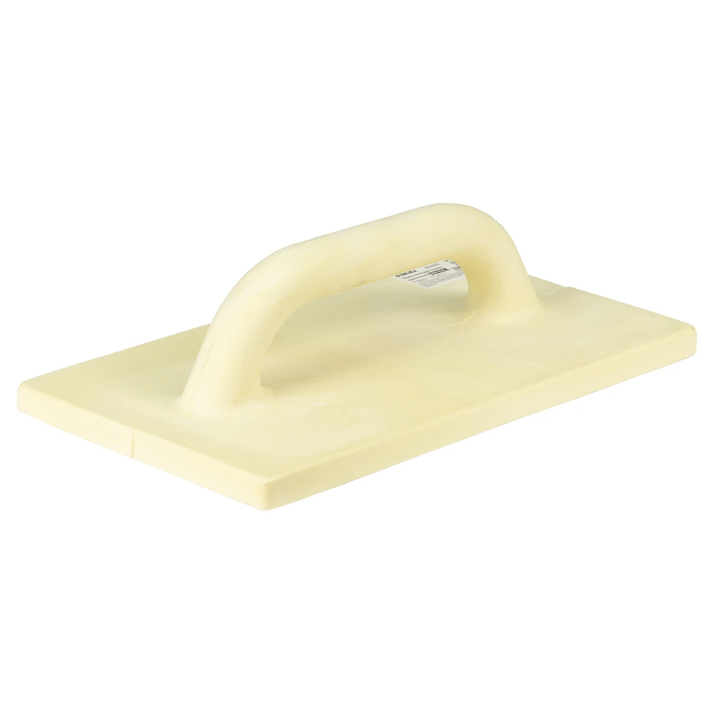 Терка має шорстку підошву з рукояткою. Корпус виготовлений з поліуретану - він легкий, з низьким ступенем стирання. Оснащена закругленою замкнутою рукояткою, яка не ковзає в руці під час роботи і підвищує зручність використання. Що в поєднанні з низькою вагою зменшує втому від тривалих робіт.