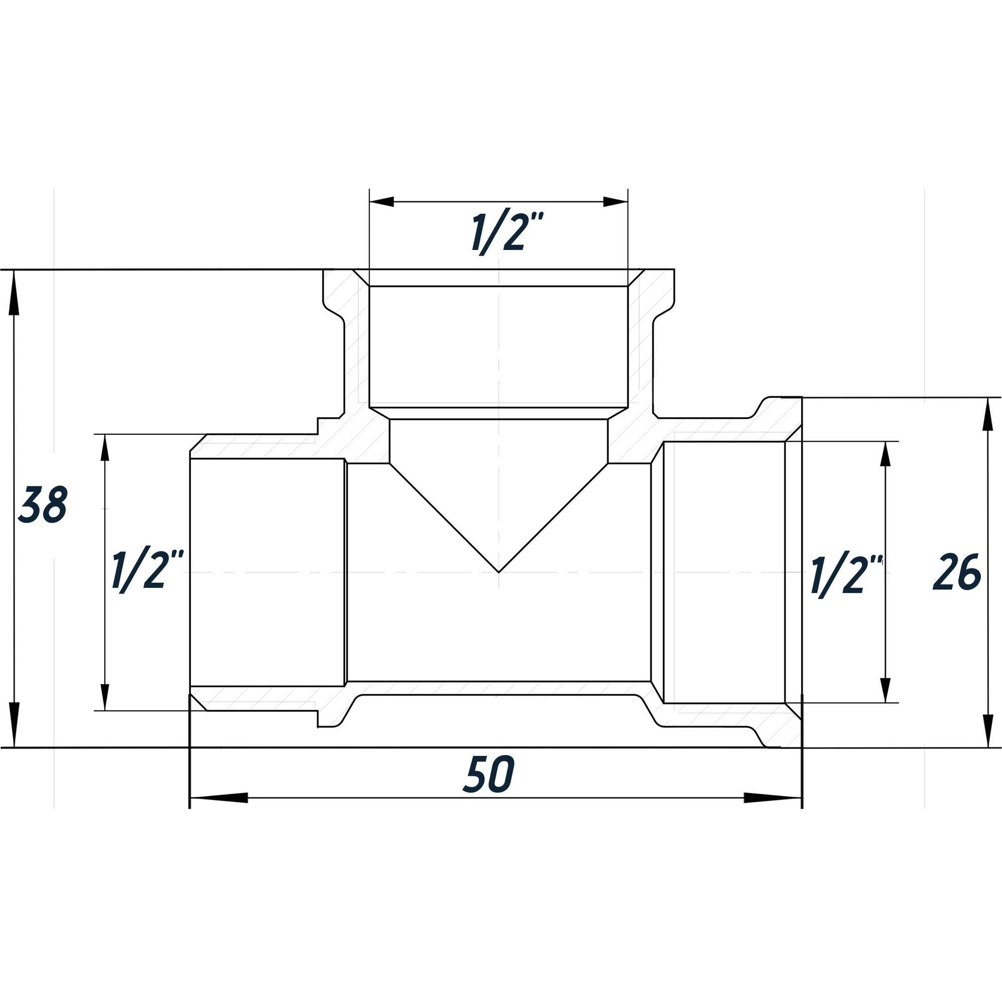 -З'єднання: 1/2″ Внутрішня різьба х 1/2″ Внутрішня різьба х 1/2″ Зовнішня різьба