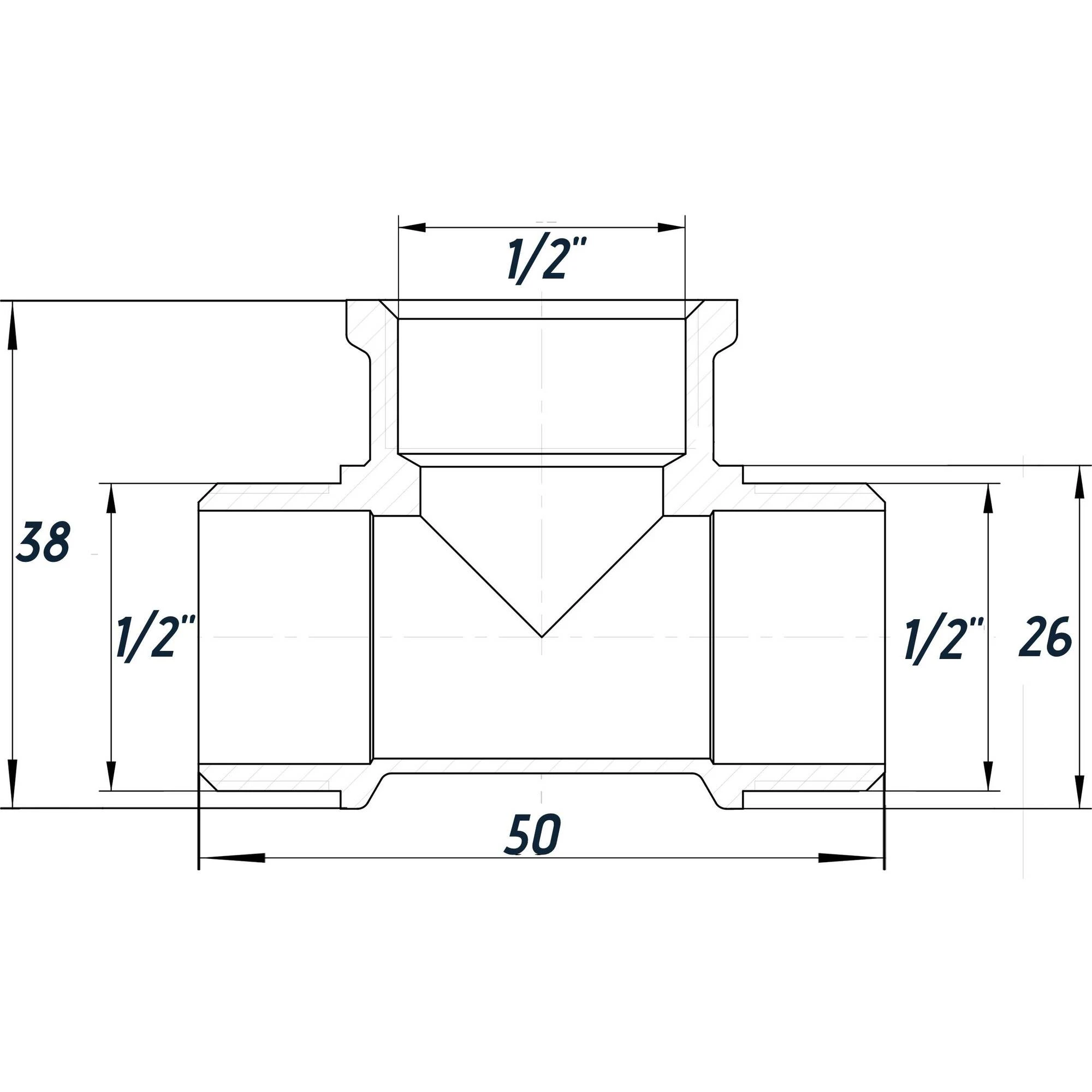 -З'єднання: 1/2″ Зовнішня різьба х 1/2″ Внутрішня різьба х 1/2″ Зовнішня різьба