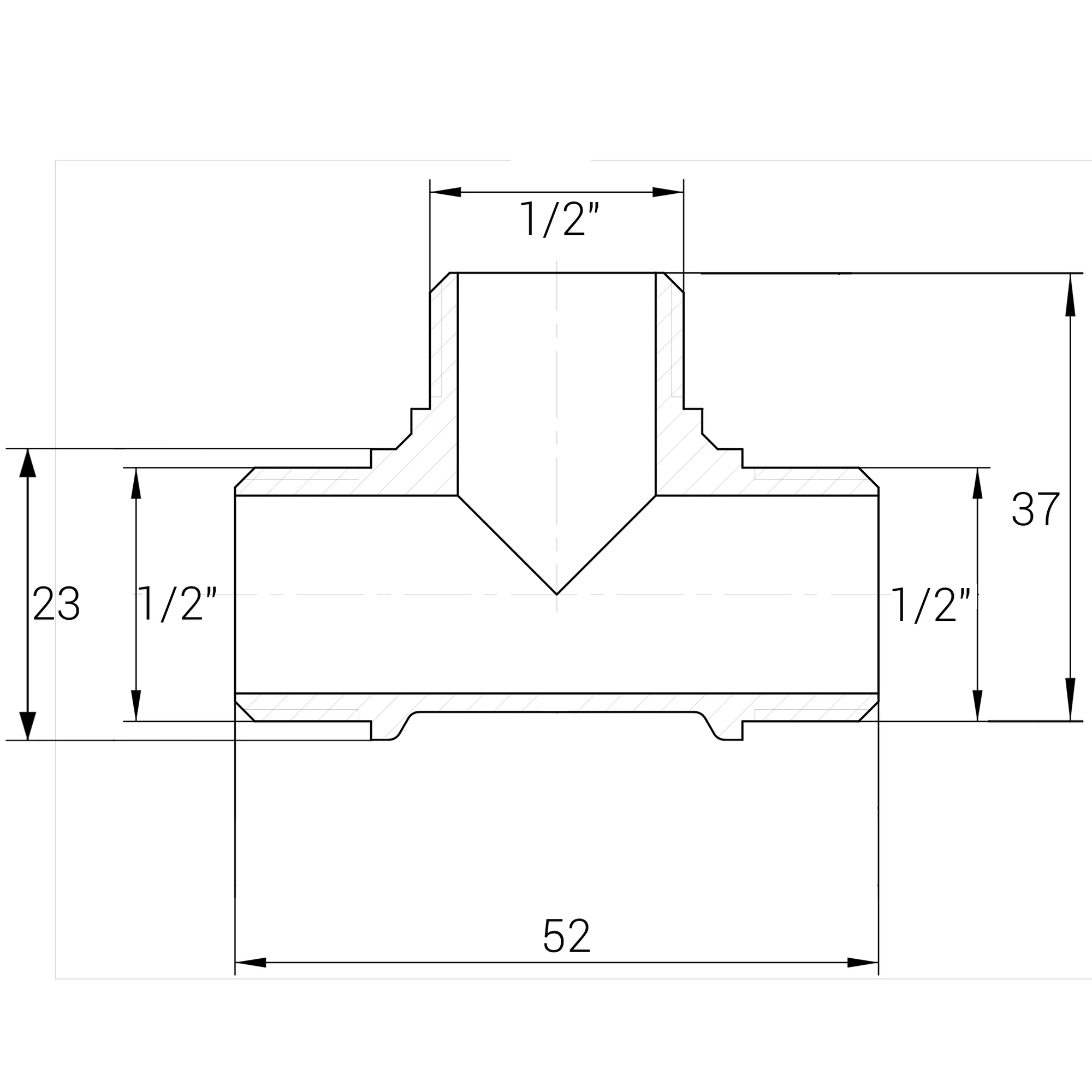 -З'єднання: 1/2″ Зовнішня різьба х 1/2″ Зовнішня різьба х 1/2″ Зовнішня різьба
