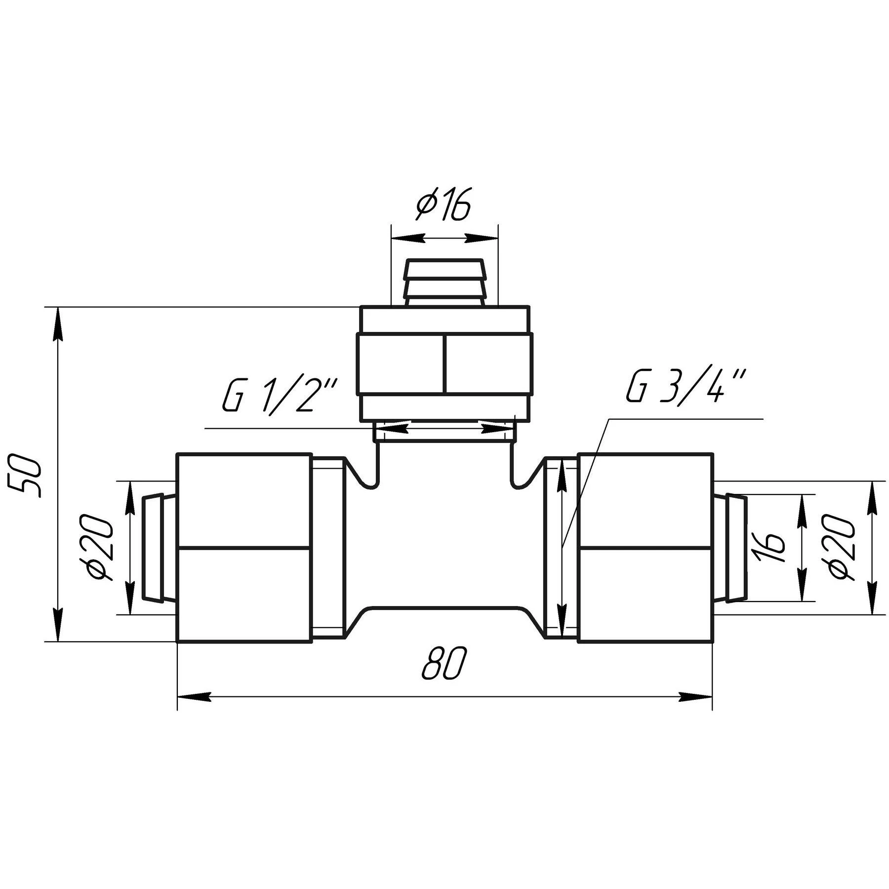 Габарити: 20 * 16 * 20 на 16 і 20 металопластикову трубу