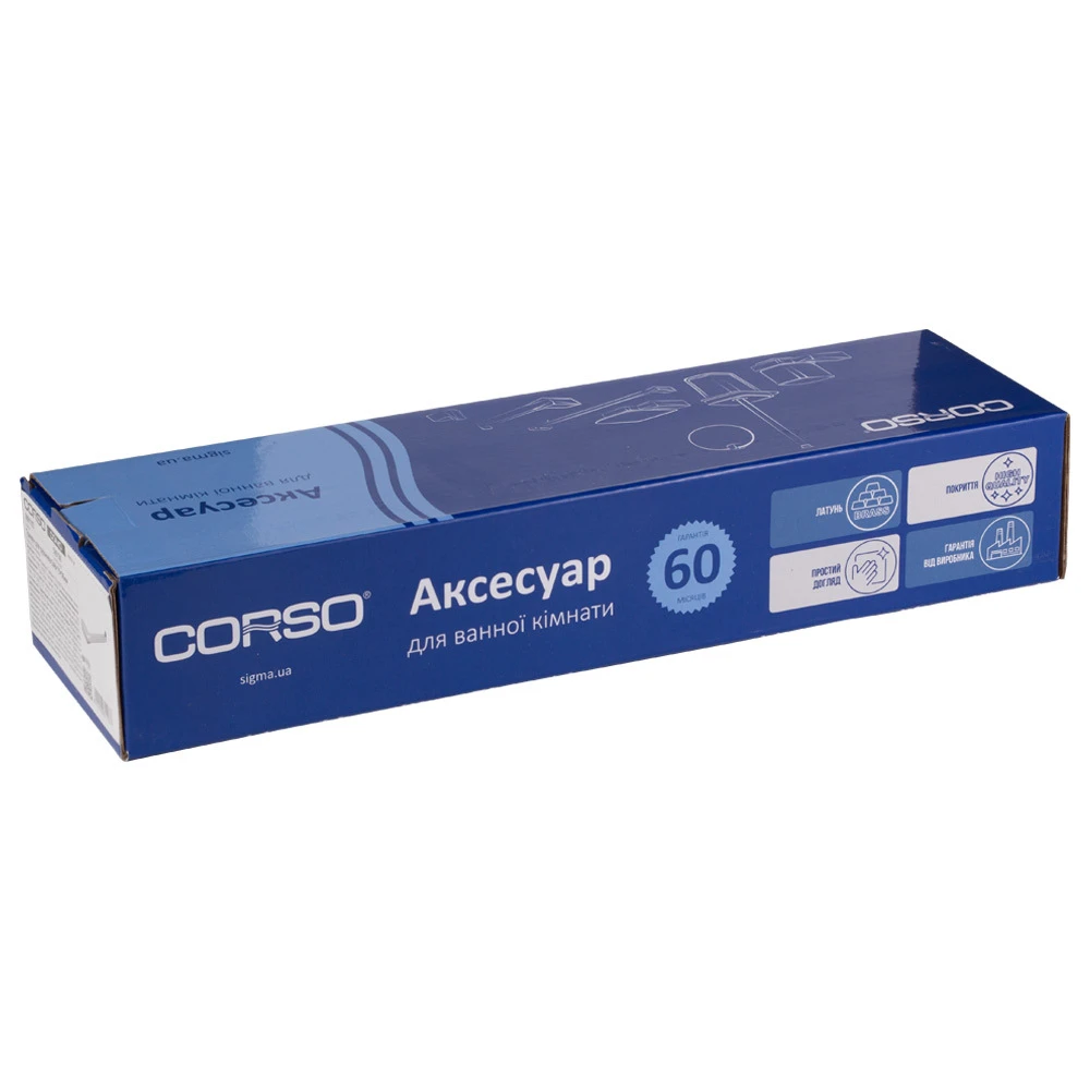 Аксесуари для ванної кімнати - це вироби, які виконують утилітарні та декоративні функції. За допомогою цих виробів з функціональним та привабливим дизайном, інтер'єр вашої кімнати досягне необхідного рівня комфорту. Аксесуари торгівельної марки CORSO виготовлені з високоякісної латуні та мають унікальне зносостійке покриття. Сантехніка торгівельної марки CORSO виробляється у відповідності з усіма стандартами і технічними умовами, встановленими в ЄС.
