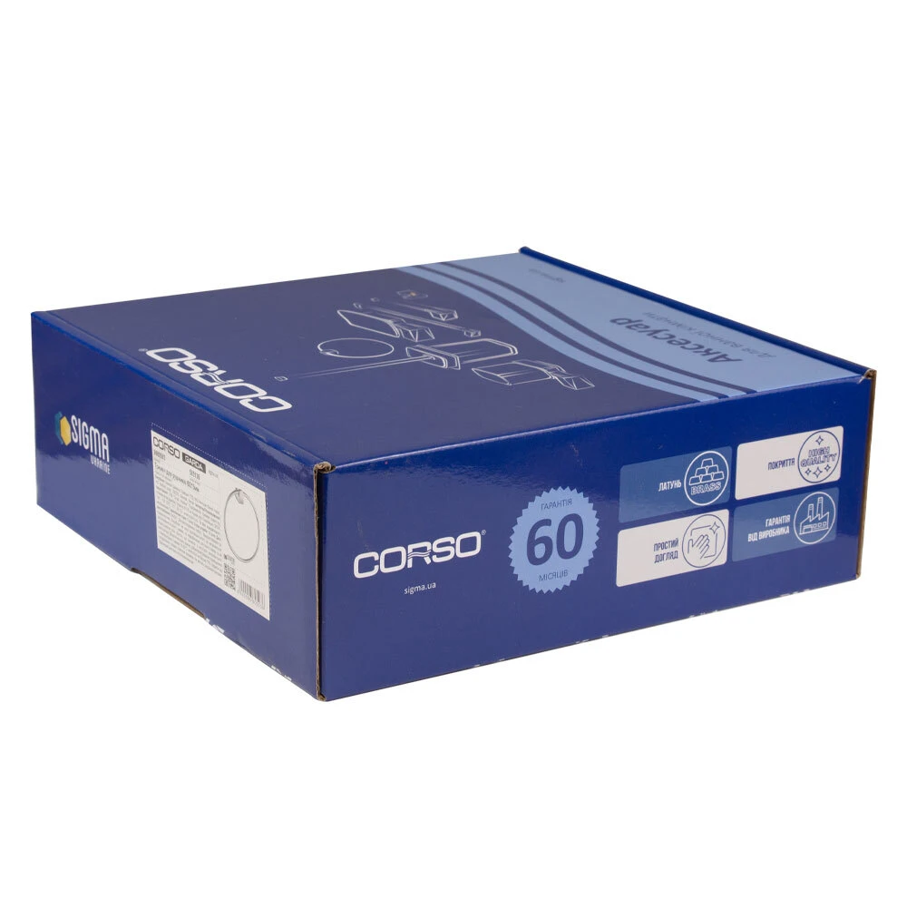 Аксесуари для ванної кімнати - це вироби, які виконують утилітарні та декоративні функції. За допомогою цих виробів з функціональним та привабливим дизайном, інтер'єр вашої кімнати досягне необхідного рівня комфорту. Аксесуари торгівельної марки CORSO виготовлені з високоякісної латуні та мають унікальне зносостійке покриття. Сантехніка торгівельної марки CORSO виробляється у відповідності з усіма стандартами і технічними умовами, встановленими в ЄС.
