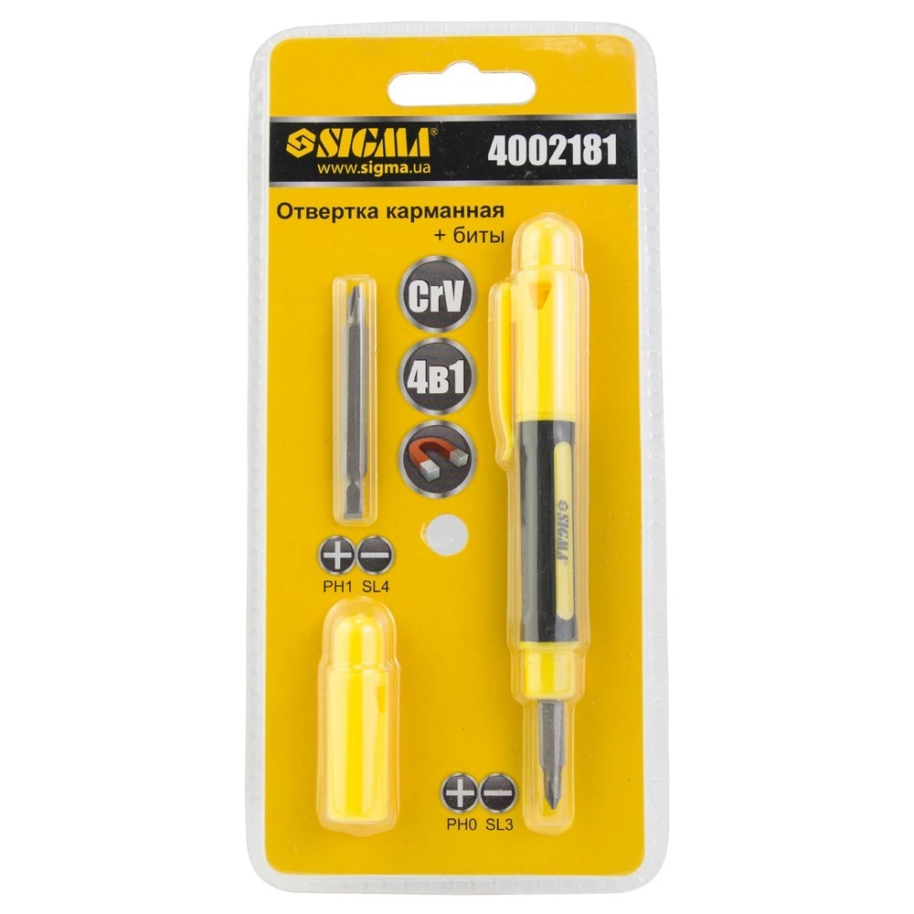 Викрутка кишенькова з двосторонніми битами 4в1 CrV SIGMA (4002181)