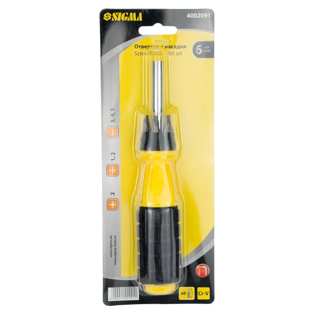 Викрутка магнітна з битами 6шт SIGMA (4002091) призначена для вкручування і відкручування шурупів, саморізів і гвинтів.