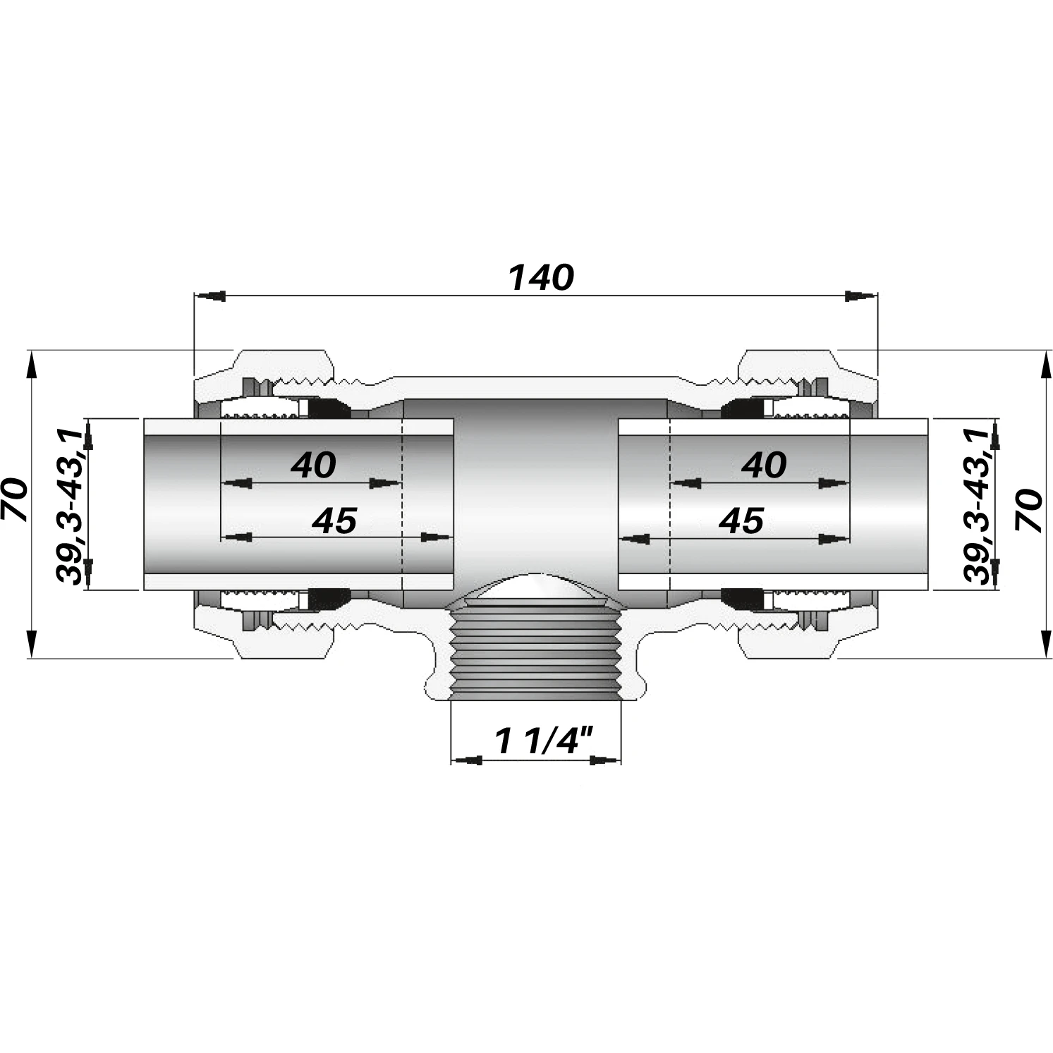 З'єднання зажимне потрійне 1 1/4″(Ø40мм)х1 1/4″В чавунне QТ Gebo