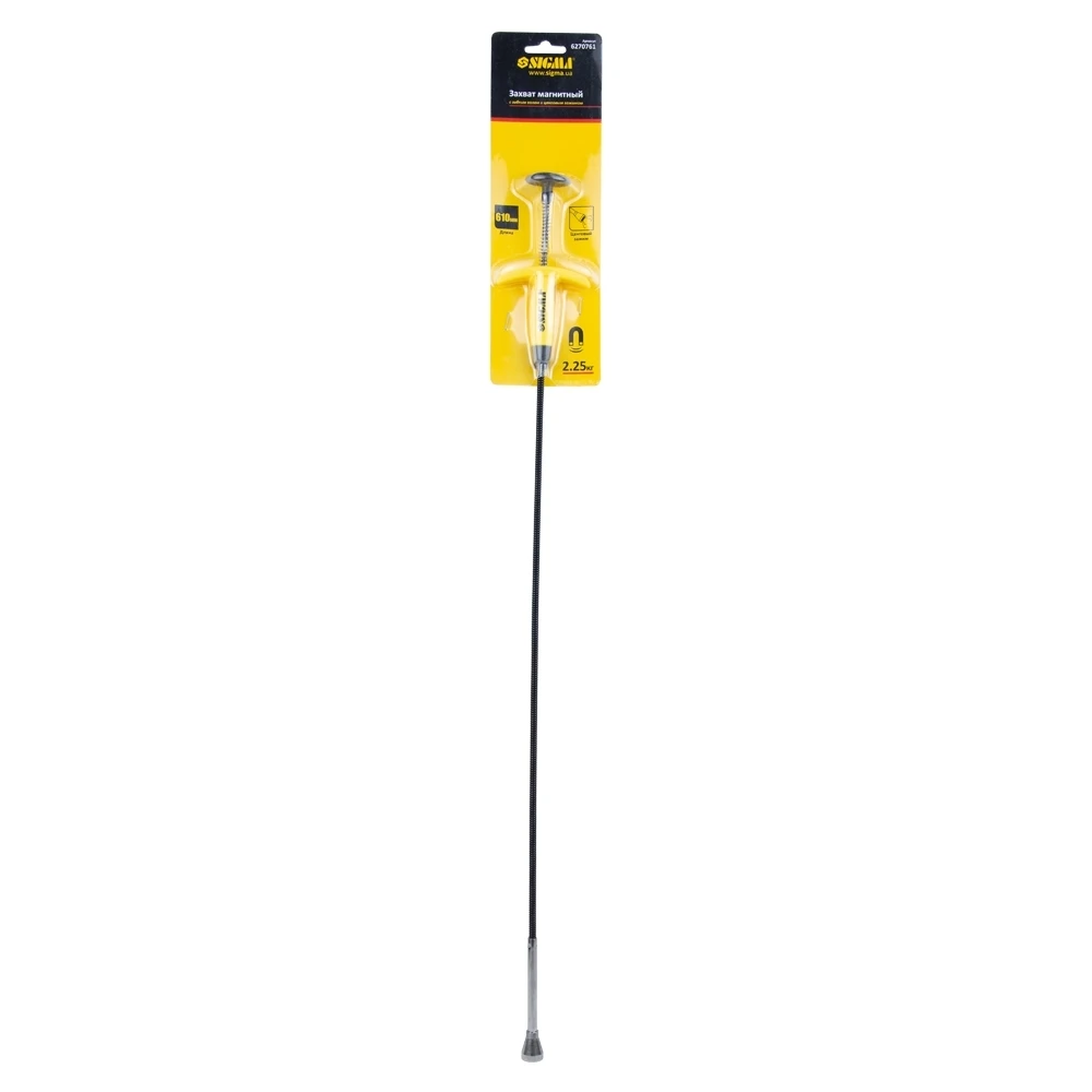 Захват магнітний з гнучким валом та цанговим затискачем 610мм SIGMA (6270761) - призначений для захоплення деталей і елементів кріплення при необхідності витягти їх з важкодоступних місць. Гнучкий вал зберігає будь-яку задану форму (після вигину не повертається вихідне положення). Захоплення оснащений кільцевим магнітом і цанговим затискачем з поворотною пружиною. Затиск має вигнуту форму, легко виходить з корпусу і забирається назад. Максимальне навантаження на магніт, яка становить 2,25кг, допустиме лише у вертикальному положенні рукоятки.