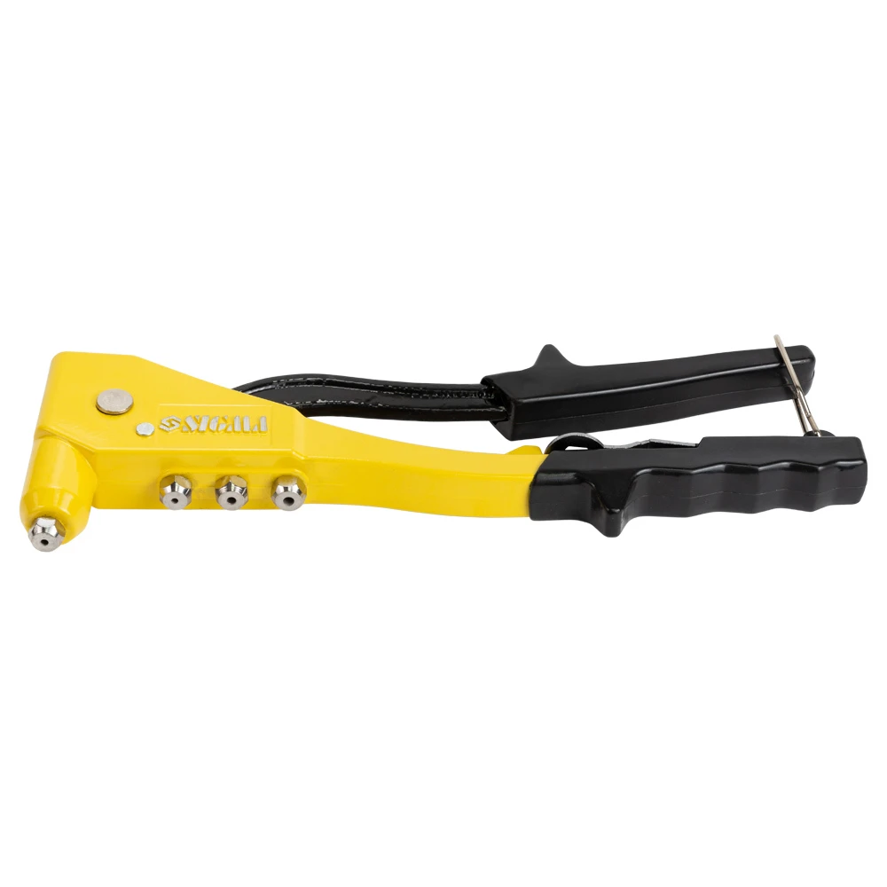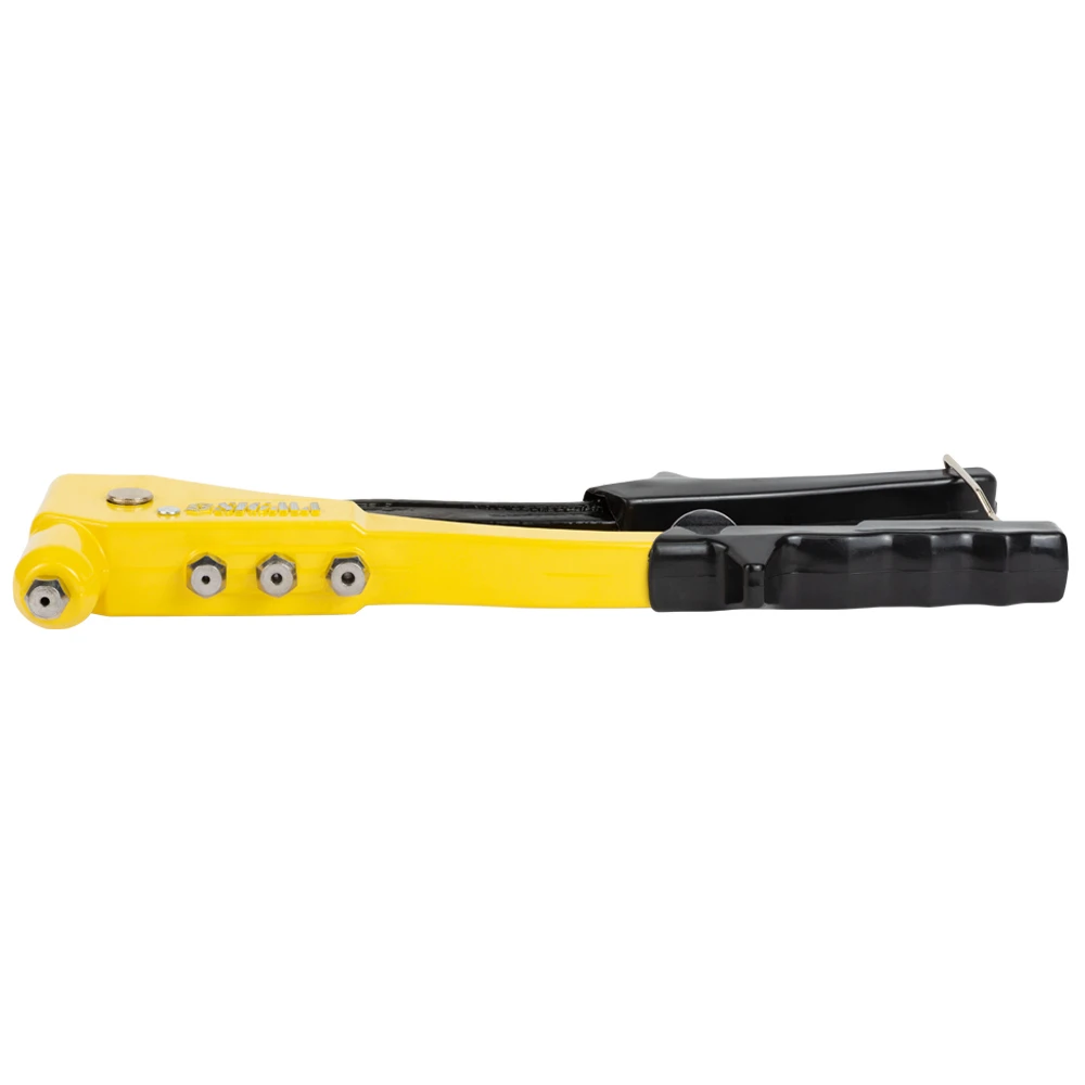 Кулачки виготовлені з хромомолібдена, що гарантує тривалий термін експлуатації. Трикулачкова конструкція забезпечує надійний рівномірний зажим заклепки. У комплект входять насадки під різні діаметри заклепок і ключ для їх заміни. Перед створенням з’єднання, в деталях, що будуть скріплюватися, потрібно просвердлити наскрізний отвір, що має діаметр на 1-2 мм більше, ніж діаметр циліндра заклепки.