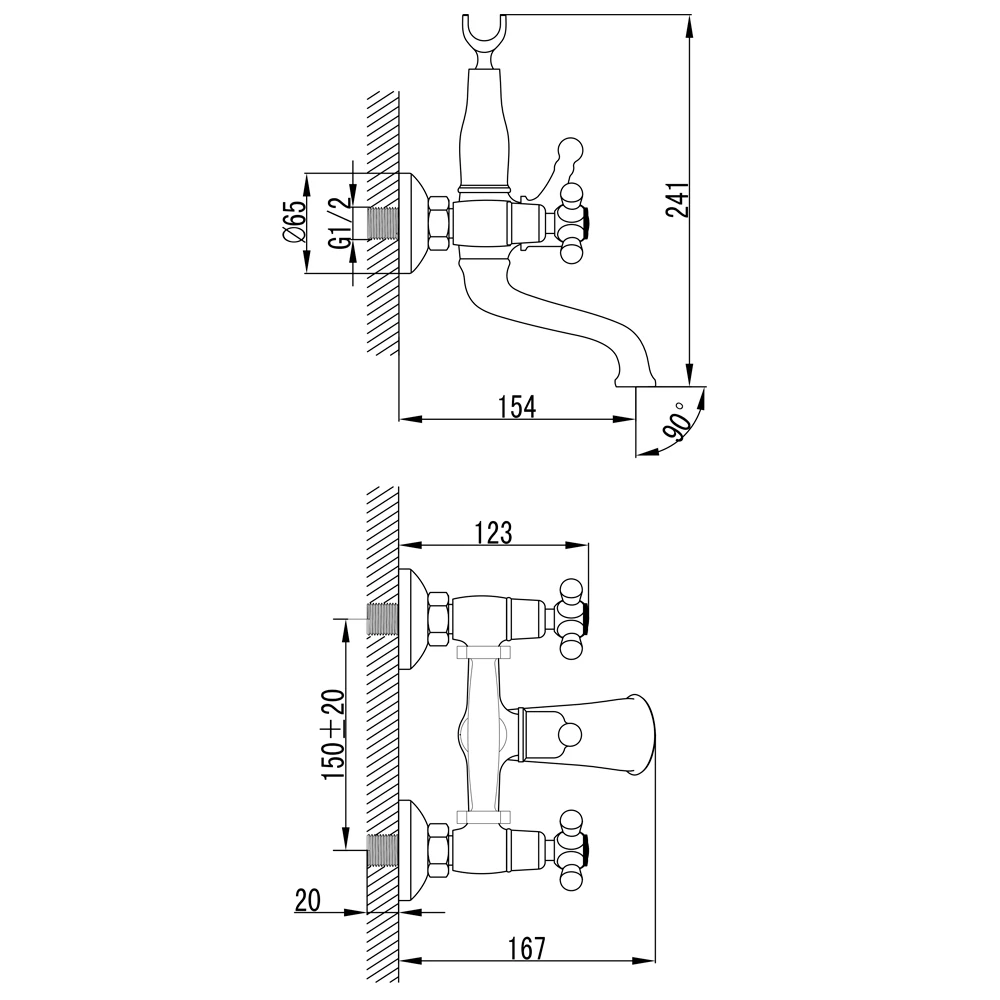 Змішувач BRENTA ½" для ванни излив поворотний дивертор вбудований картріджний CORSO FE-2C152K (9679204)