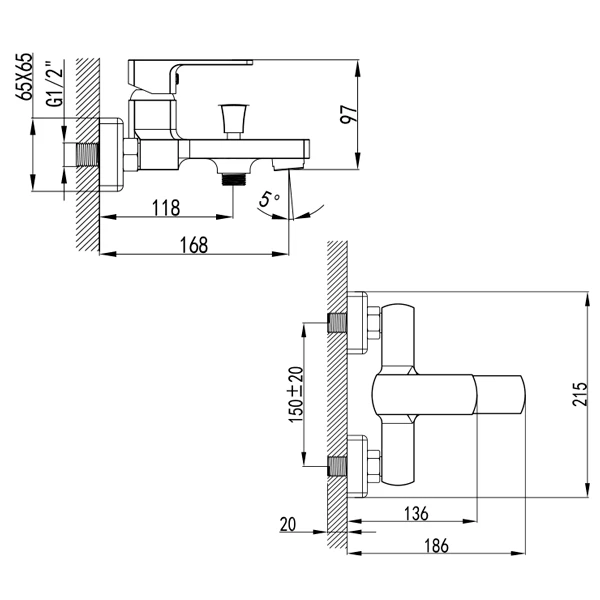 Змішувач COMO Ø35 для ванни литий CORSO BF-1C129C (9611200)
