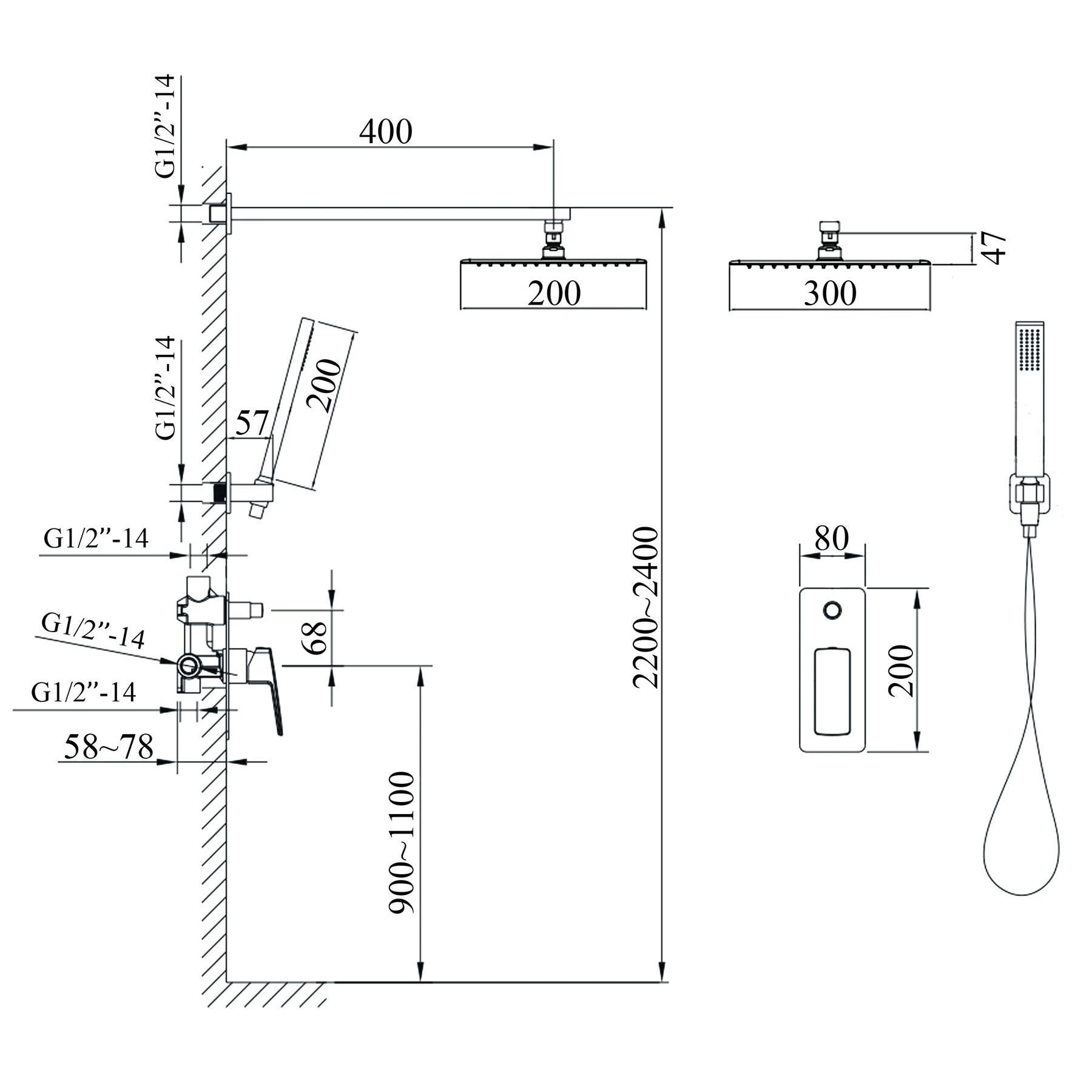 вбудований, душовий комплект
