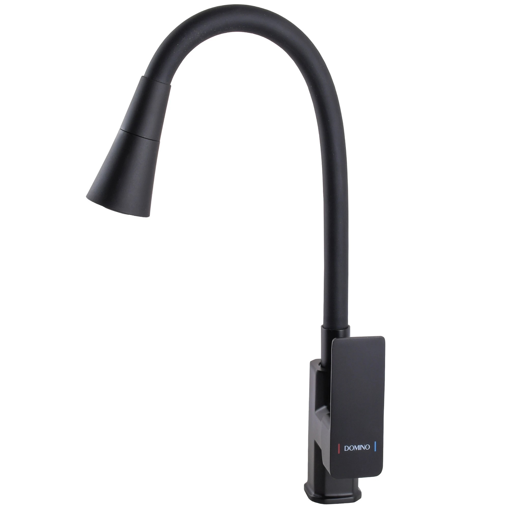 Змішувач для кухні DOMINO MALIBU DMM-203LM-BB-B01 Чорний-Чорний гофровилив з душ.насадкою На Гайці