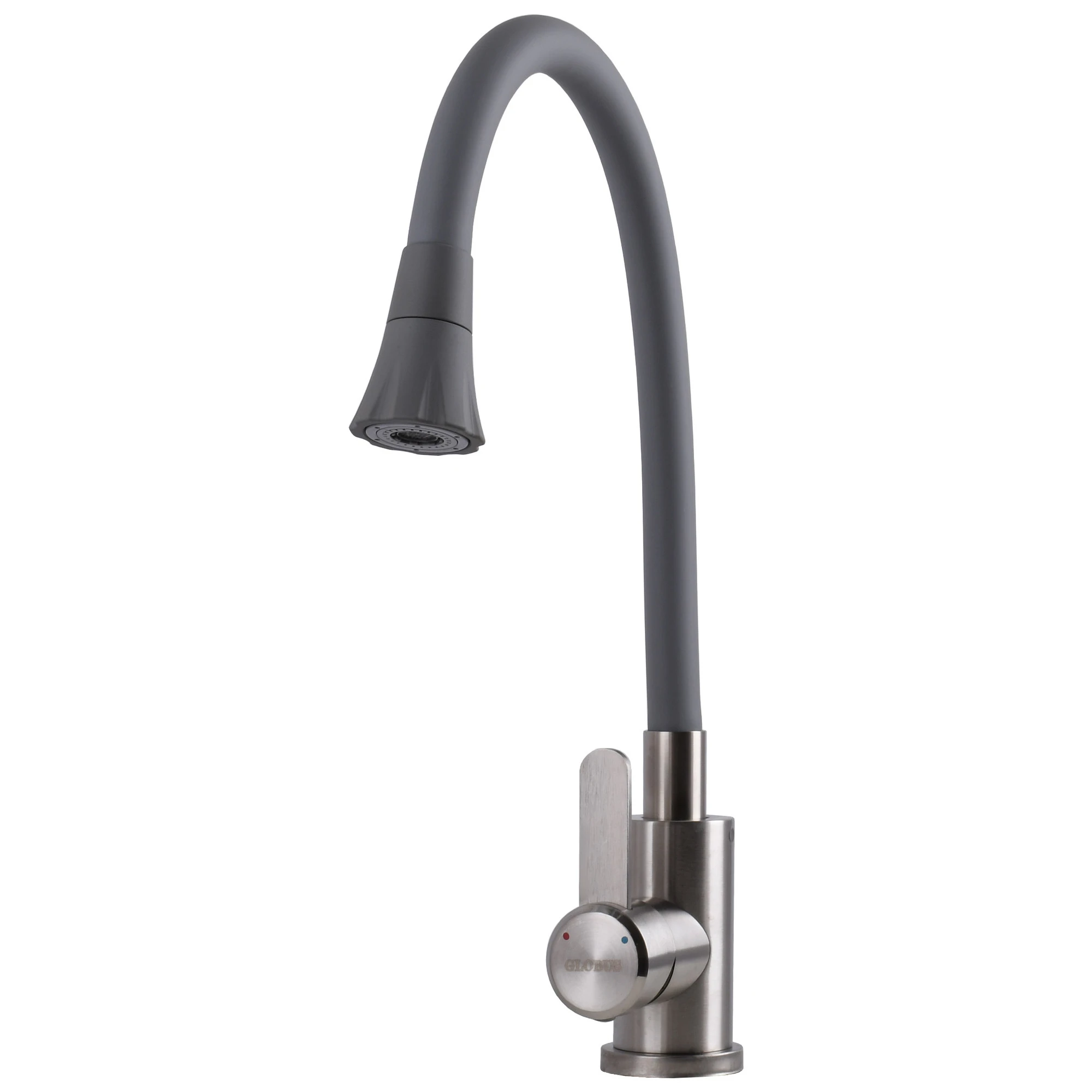Змішувач для кухні Globus Lux WIEN SBT2-203SA-G03 на гайці,SUS304 гофровилив СІРИЙ з душ.насадкою
