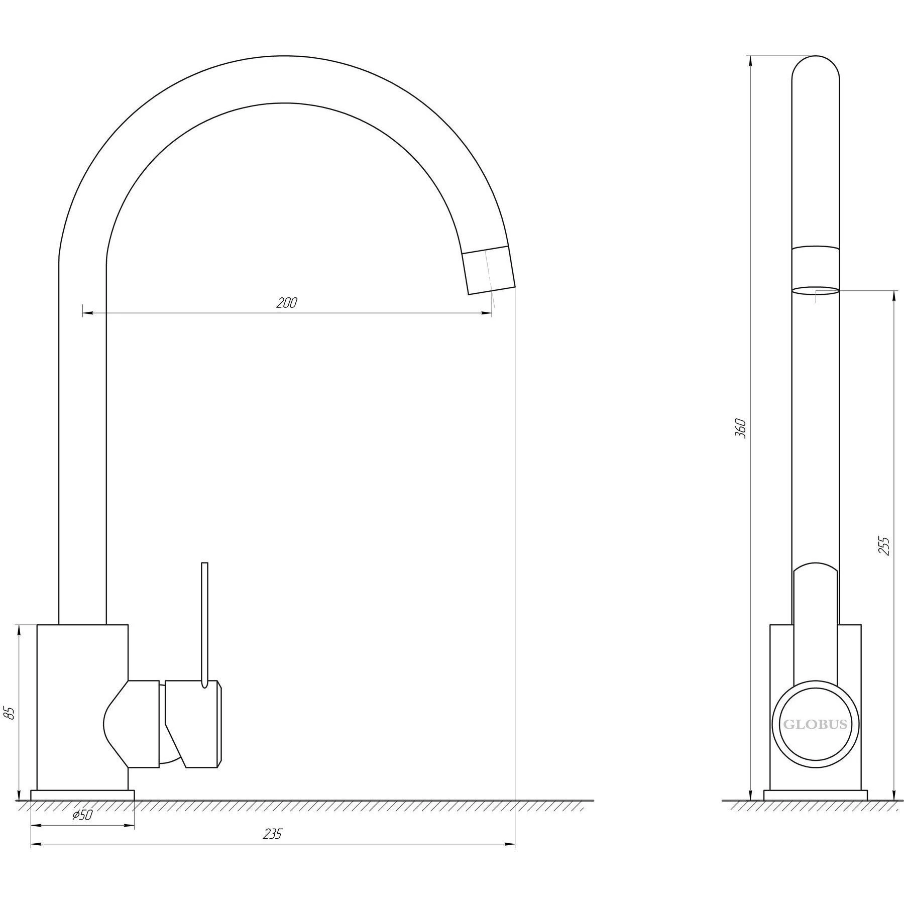 Змішувач для кухні Globus Lux WIEN SUS2-203SN SUS304