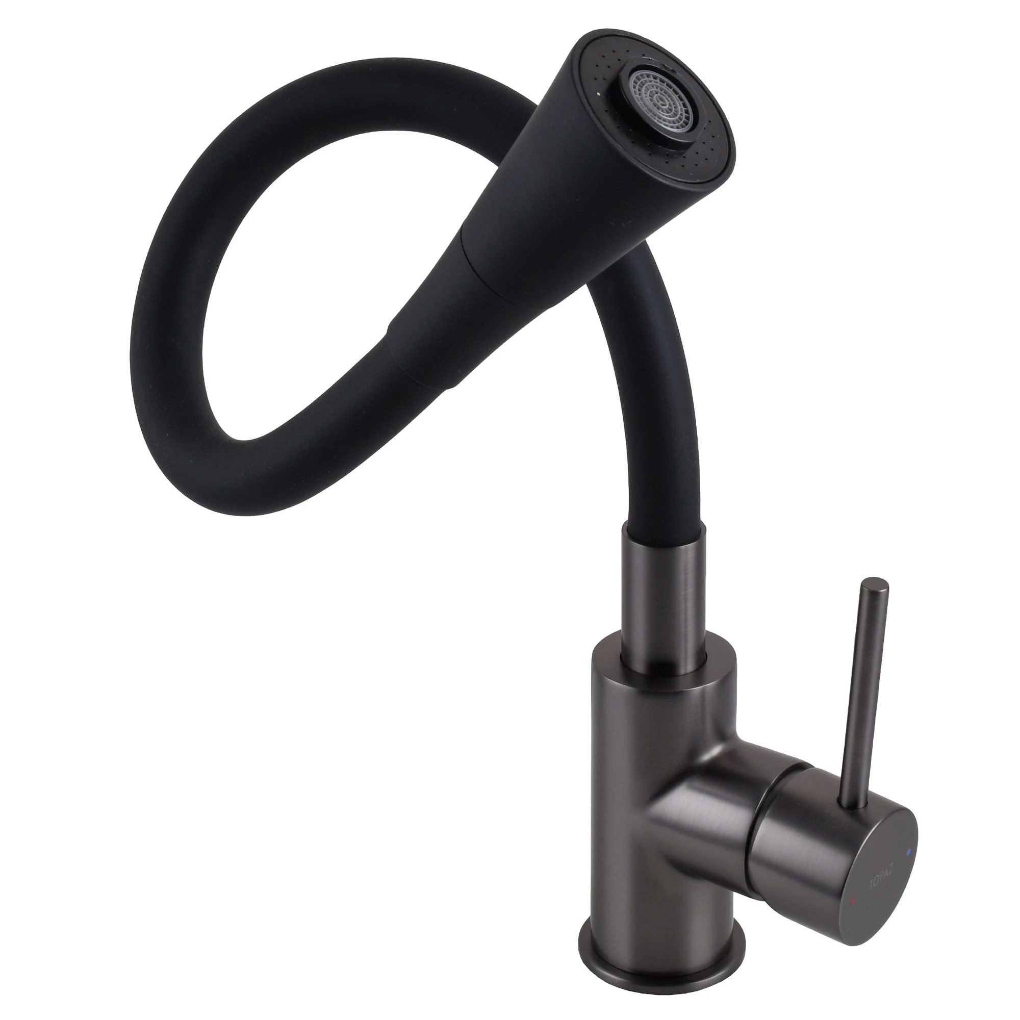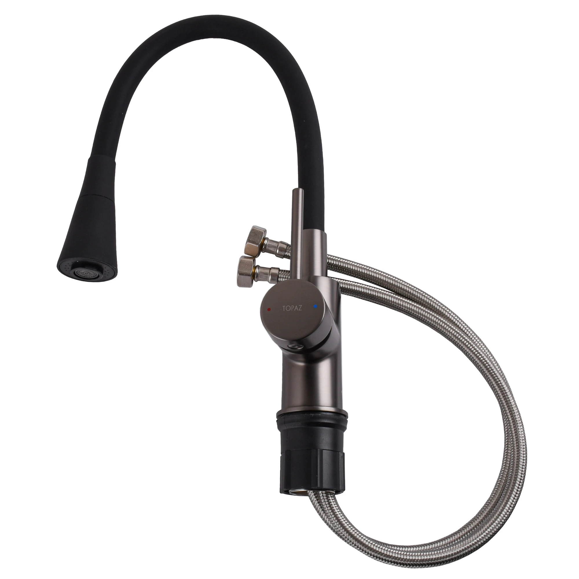 Змішувач для кухні TOPAZ LOFT TLF 8854-H39-GP-B01 Графіт.з гофр.Чорною з душ.насадкою,гайка,D35