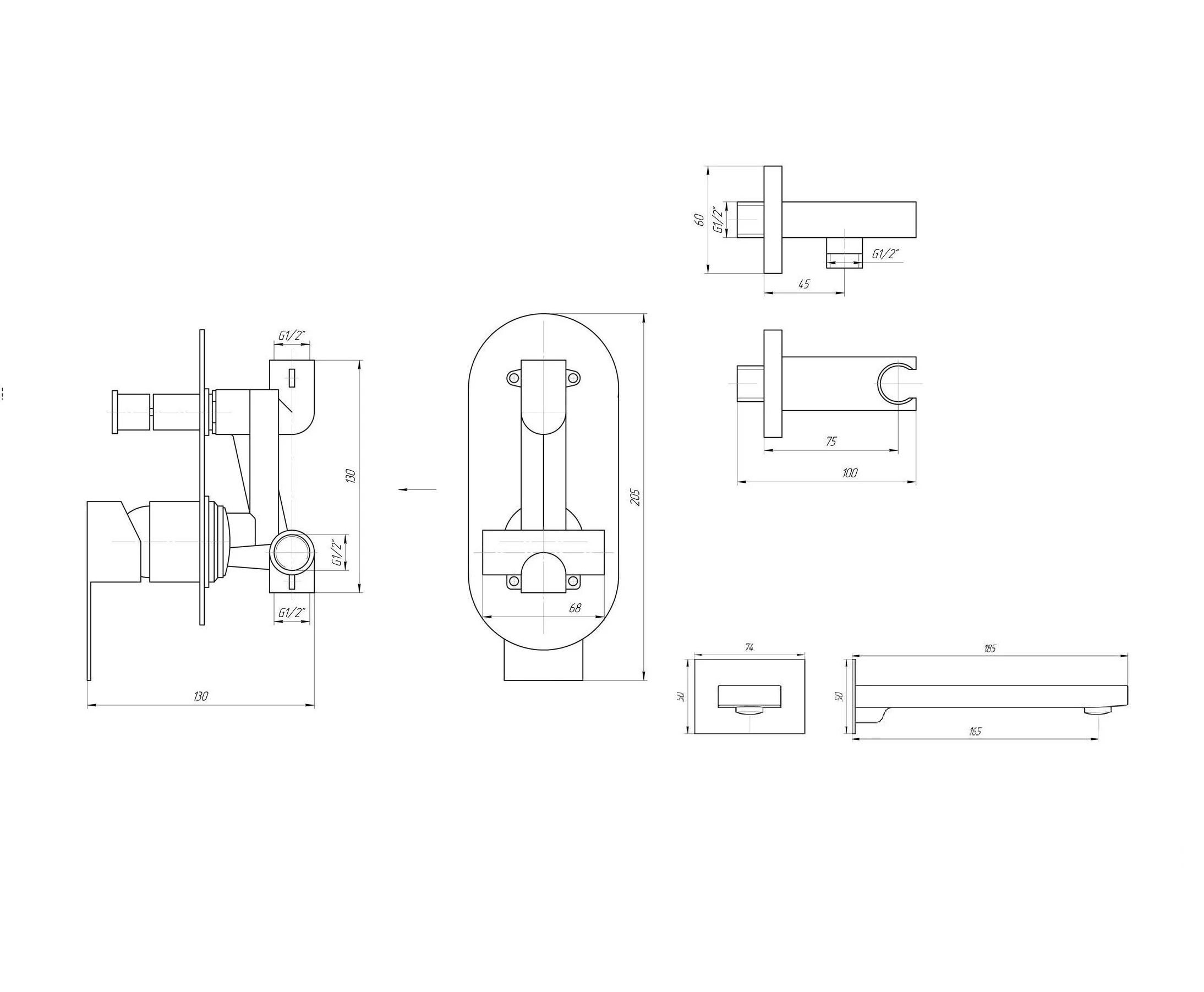 Вид монтажу душової системи: Настінний, на 2 виходи води