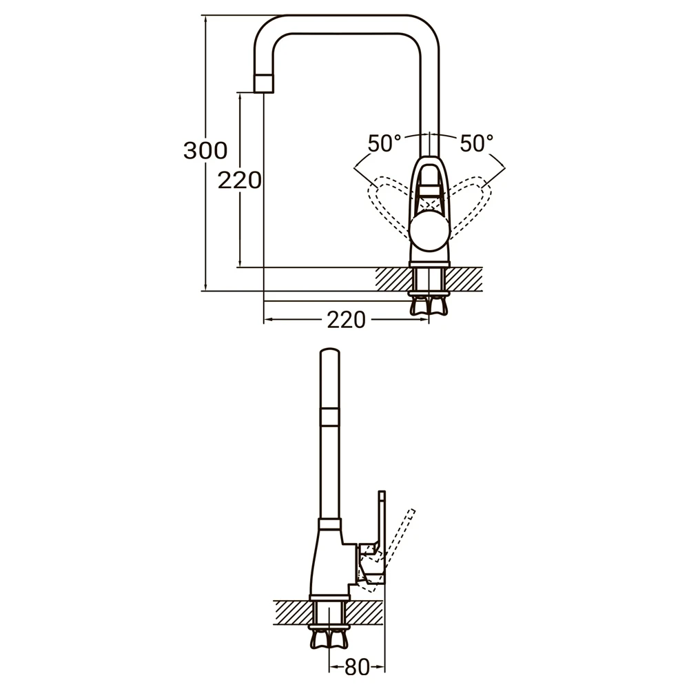 Змішувач HL Ø35 для кухні Г-гусак на гайці AQUATICA (HL-4B230C)