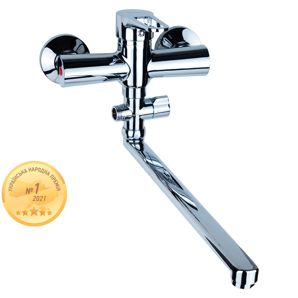 Змішувач HL Ø35 для ванни гусак прямий 350мм дивертор внесений картріджний AQUATICA (HL-3C230C)