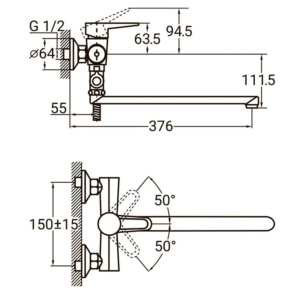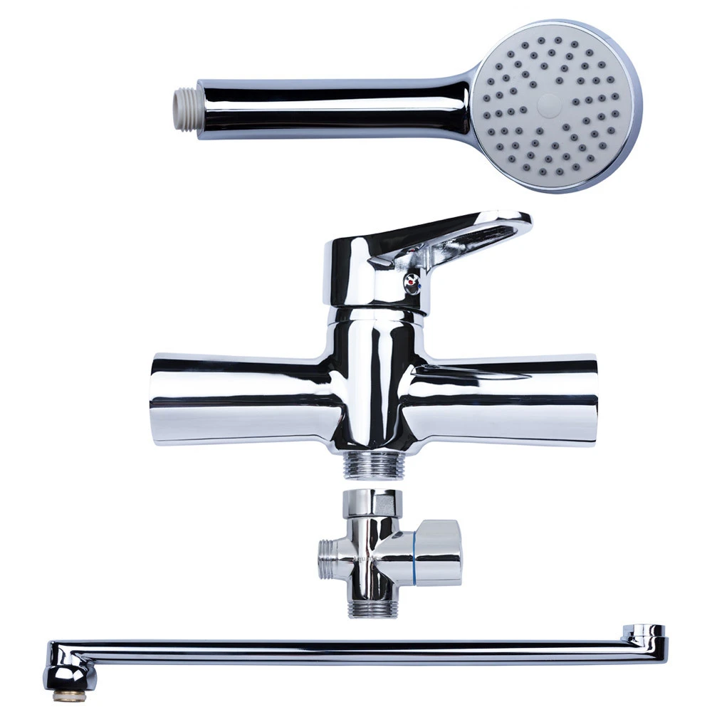 Змішувач для ванни HL-3C230C від ТМ Акватика укомплектований шлангом для душу з нержавіючої сталі (1500 мм), а також лійкою і кронштейном з міцного ABS-пластика. Тип кріплення - настінний, з допомогою ексцентриків з захисними декоративними відбивачами.