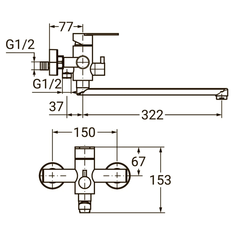 Змішувач HT Ø35 для ванни гусак прямий 325мм дивертор вбудований картріджний SS AQUATICA (HT-2C271P)