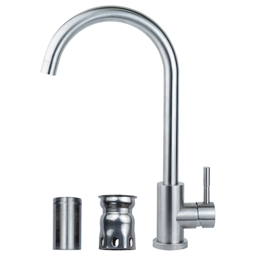 Змішувач для кухні Акватика KT-4B170P виконаний з нержавіючої сталі, має J-подібну форму виливу з вбудованим аератором. За типом управління - одноважільний. Підійде для глибоких мийок і прекрасно впишеться в інтер'єр будь-якої сучасної кухні.