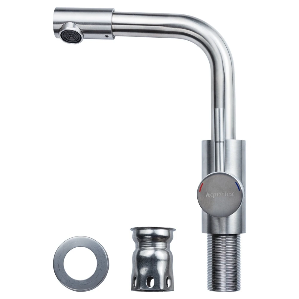 Змішувач KT Ø35 для раковини Г-гусак на гайці SS AQUATICA (KT-1A370P)