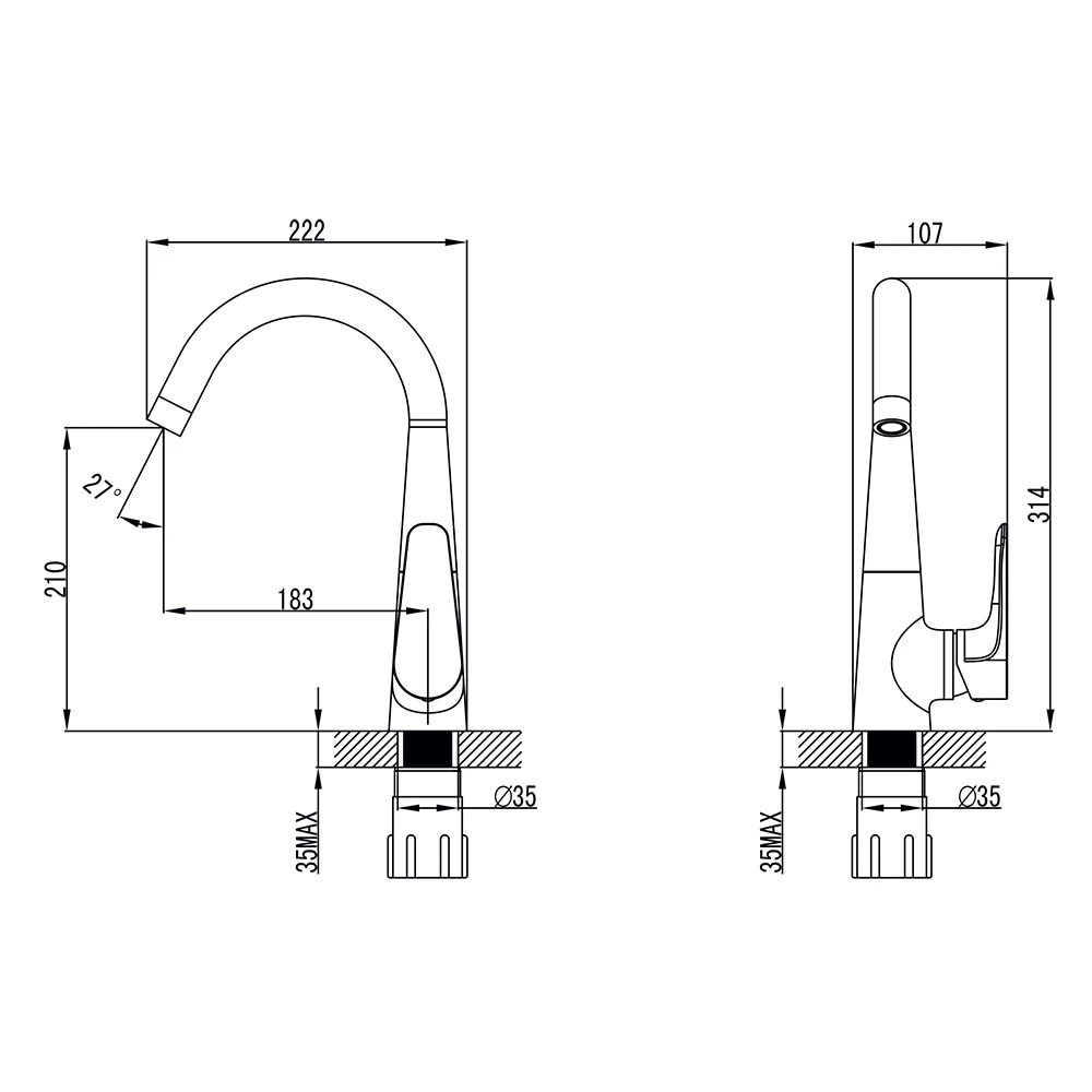 Змішувач MAGGIORE Ø40 для кухні J-излив на гайці CORSO 9608100 (BE-4B122C)