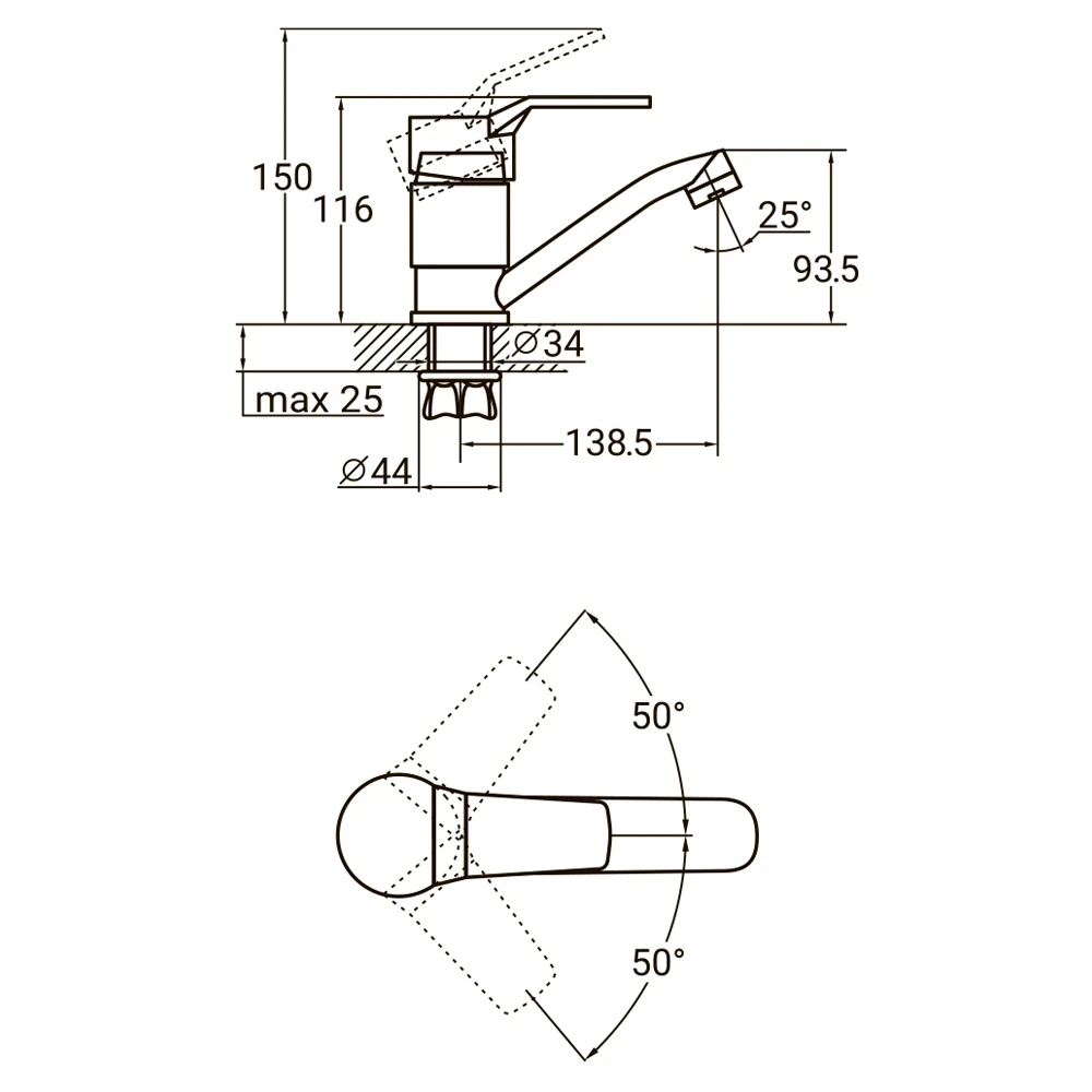 Завдяки малим габаритам займає мінімум місця і підходить для невеликих мийок. Установка здійснюється на горизонтальну поверхню з кріпленням гайкою.