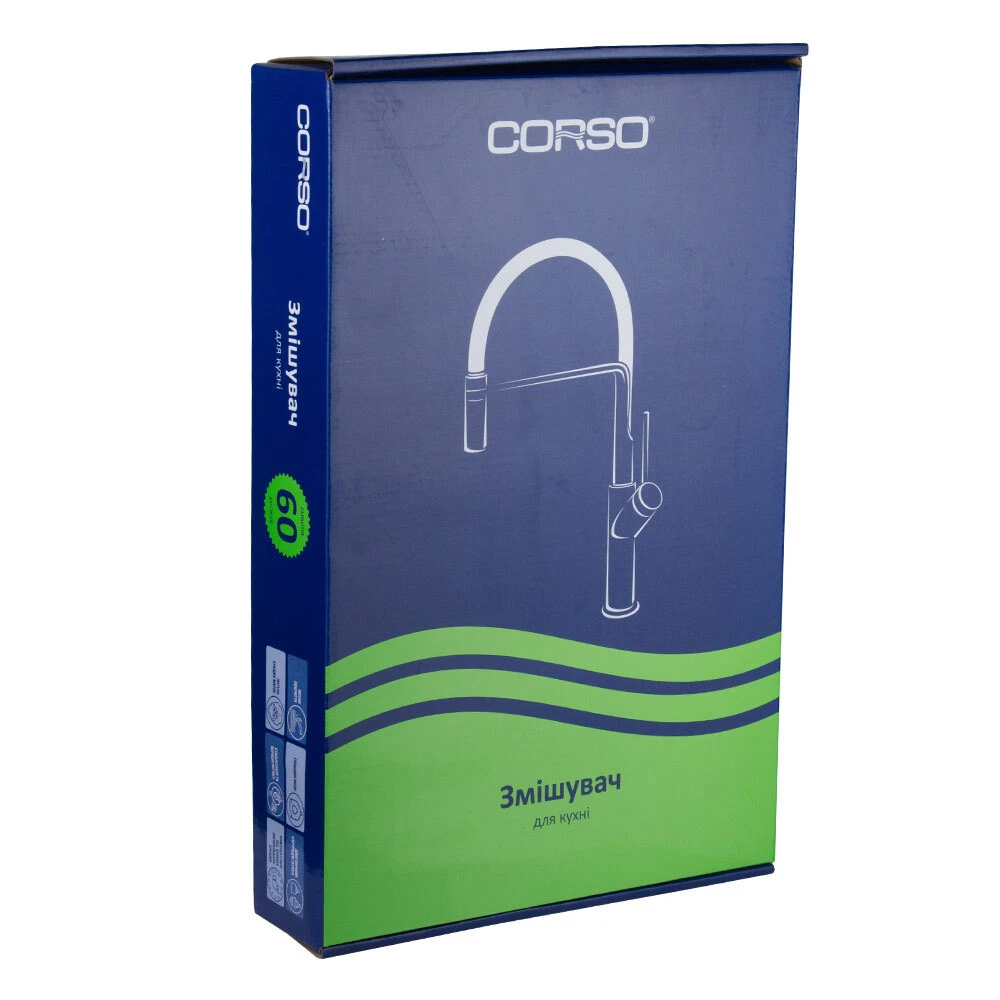 Змішувач OMODEO Ø40 для кухні вилив гнучкий з пружиною на гайці CORSO EC-4B626C (9637110)