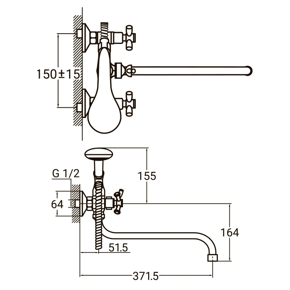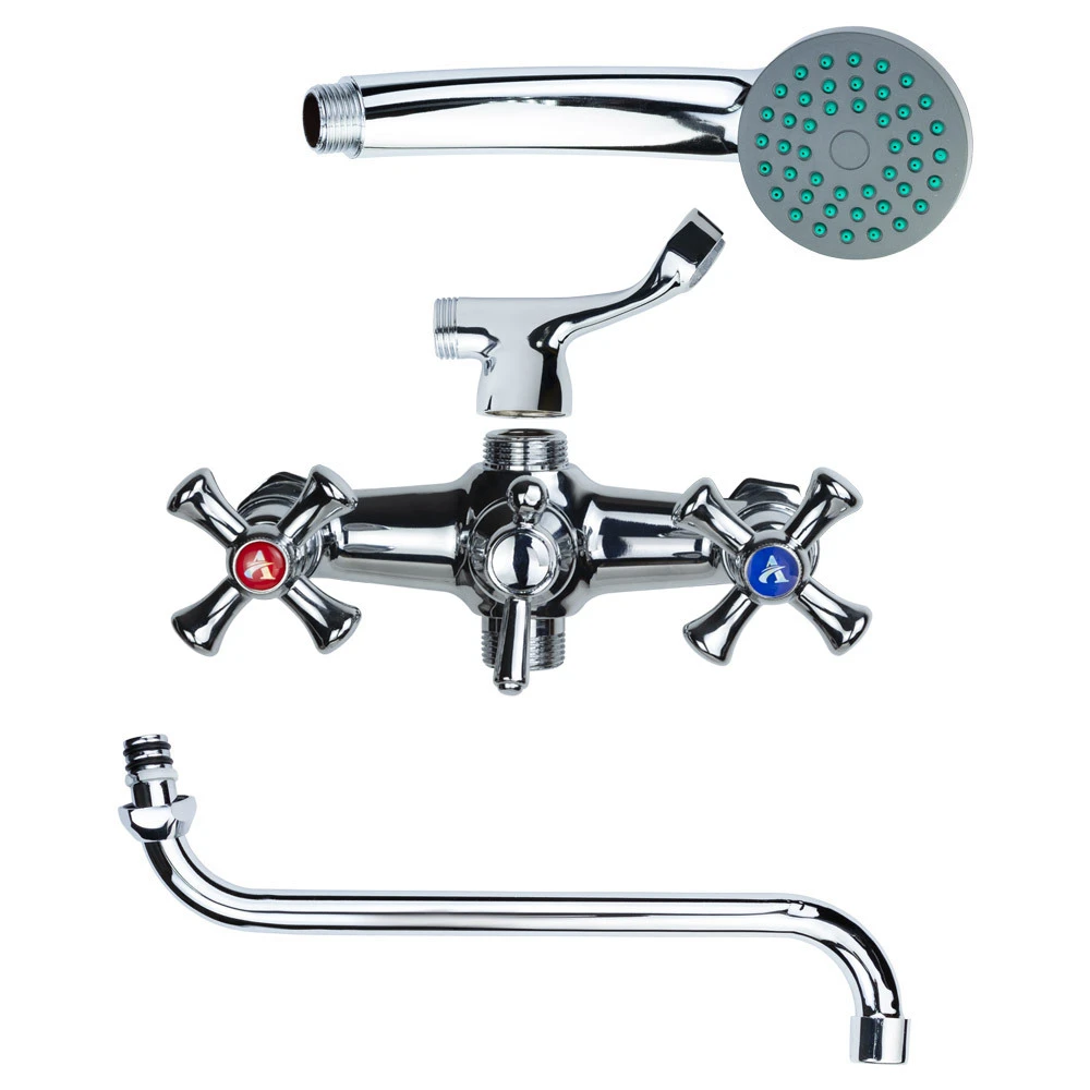 Модель PL-5C455C це двухвентильний змішувач для ванни з душем, виконаний в класичному стилі. Вентилі хрестоподібної форми з кольоровими заглушками. Вилив довгий, вигнутий, з функцією повороту по колу. Кронштейн для утримування лійки розташовується зверху крана. Дивертор кульовий, вбудований.