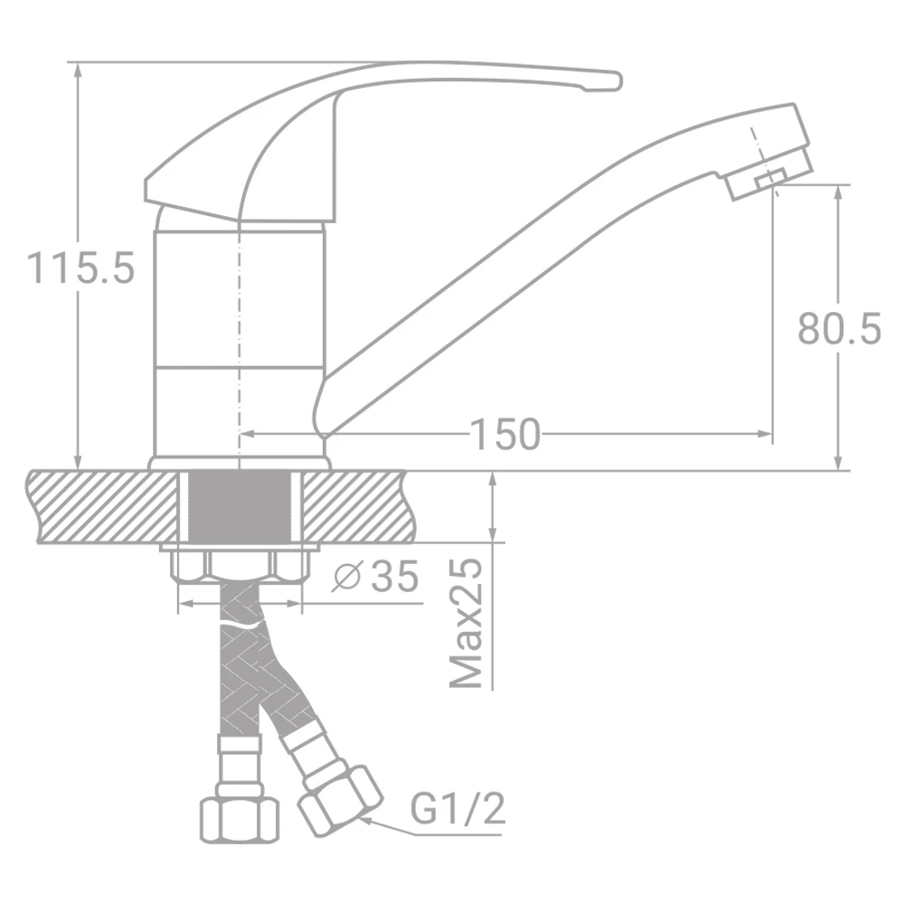 Щоб встановити змішувач для кухні SD-1B143C на мийку і підключити до водопроводу, використовуйте гнучкі підводи, які поставляються в комплекті.