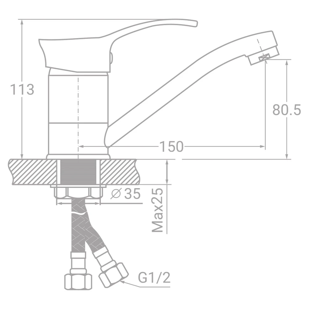 Змішувач s07 Ø40 для кухні гусак прямий 150мм на гайці TAU SE-1B145C (9807100)