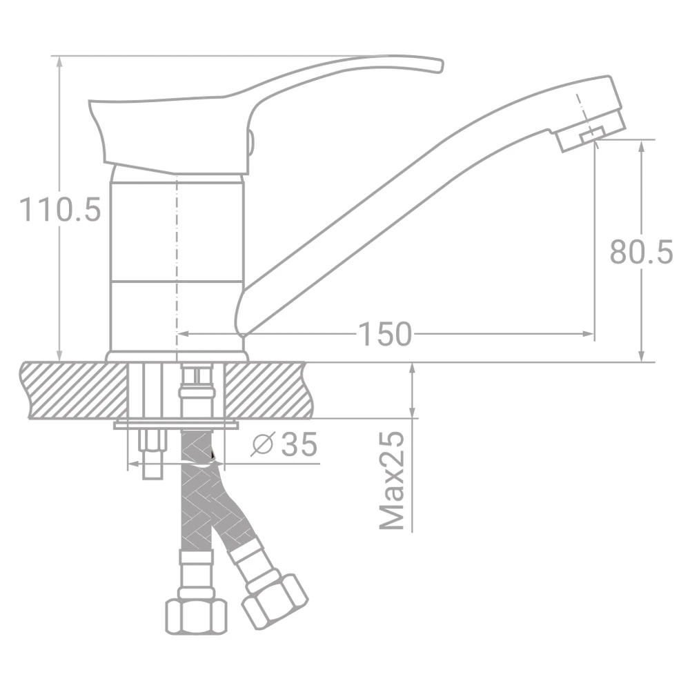 Монтаж змішувача для кухні SE-2B245C можна виконати самостійно, використовуючи кріплення і гнучкі шланги, що поставляються в комплекті.