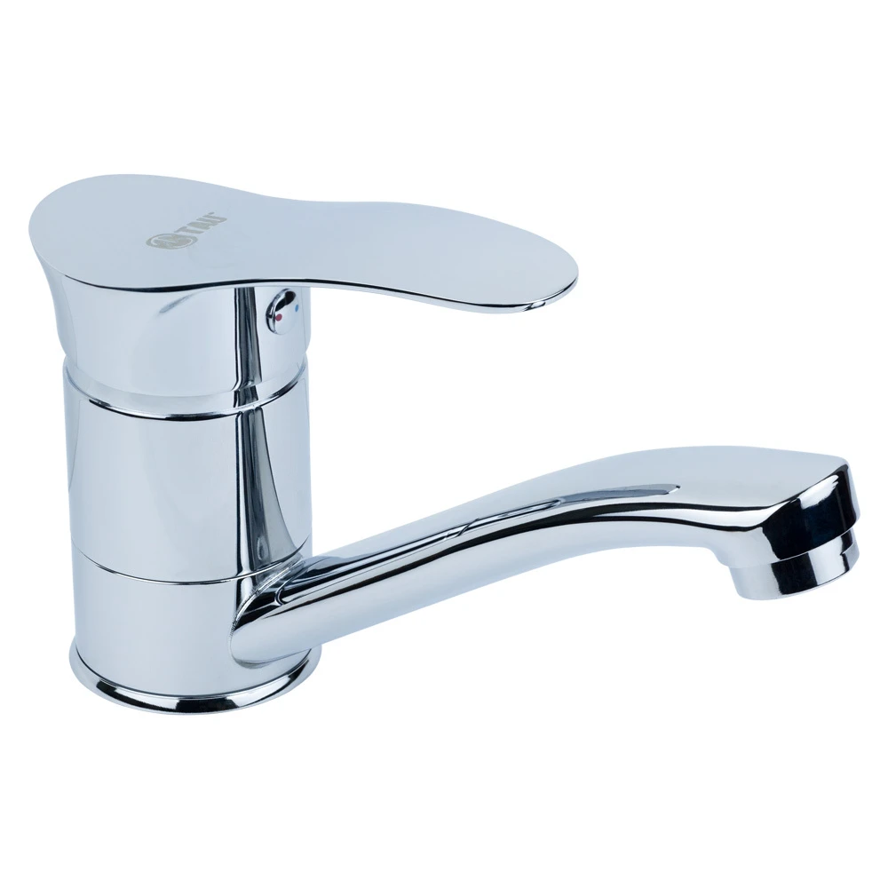 Змішувач для кухні TAU SE-2B145C з прямим коротким поворотним виливом, тип управління -одноважільний. За регулювання натиску і температури води відповідає керамічний картридж. Покриття крана - хромонікелеве, що додає виробу сріблястий блиск і стійкість до корозії. Модель підходить для невеликих мийок.