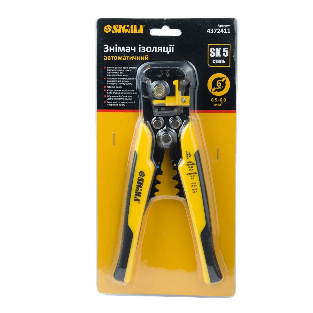 Знімач ізоляції автоматичний 0.05-6мм SIGMA (4372411) використовується для роботи з одножильним і багатожильним проводом.
