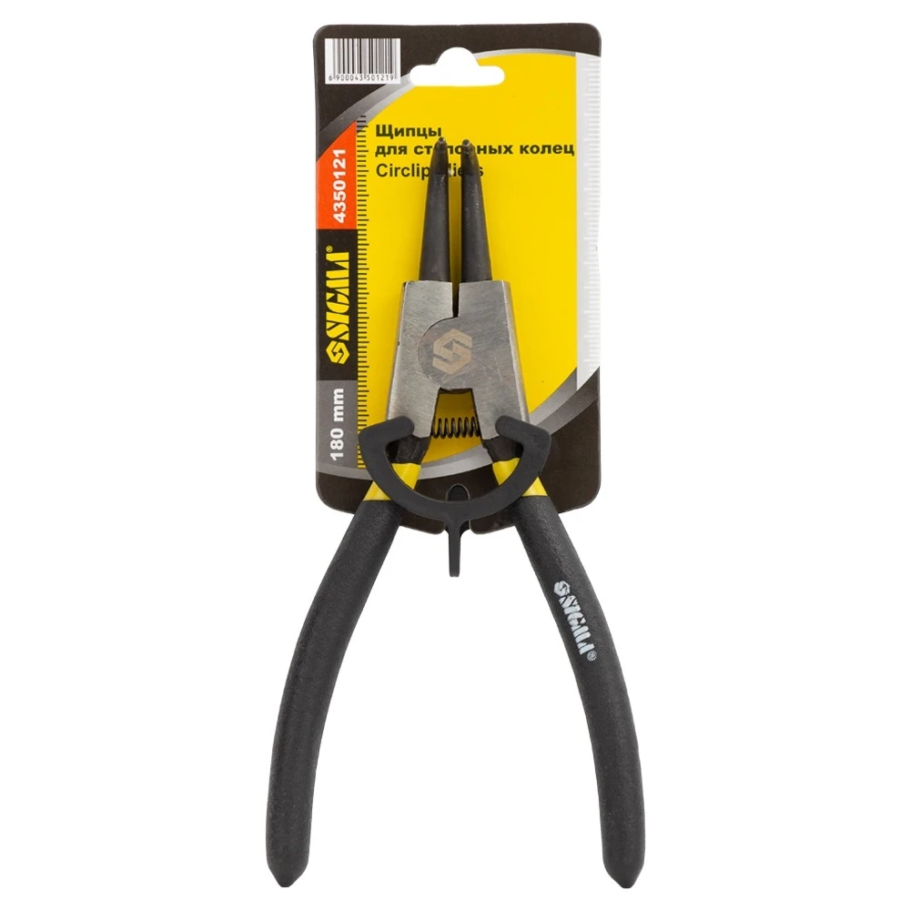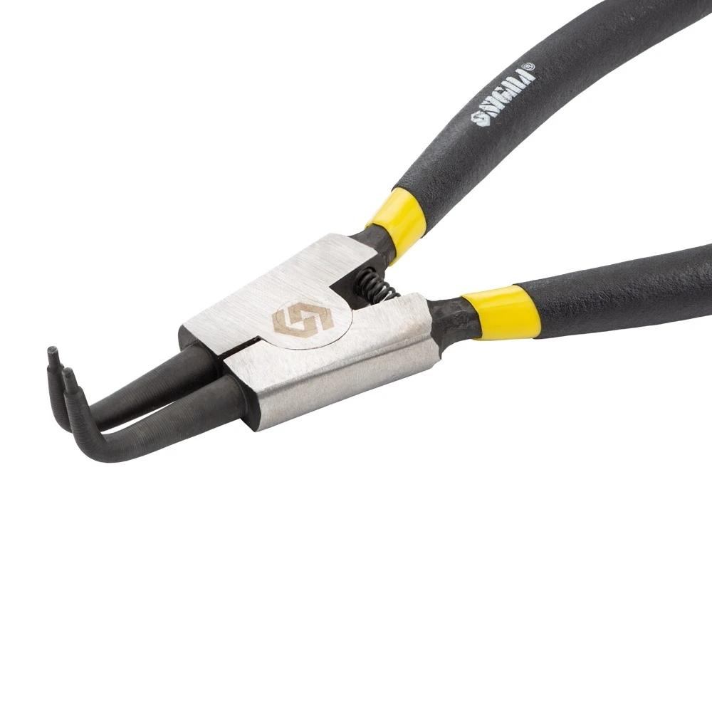 Знімач стопорних кілець 180мм (зовнішні гнуті) SIGMA (4350121) призначений для монтажу і демонтажу внутрішніх і зовнішніх стопорних кілець. Виготовлені з високовуглецевої інструментальної сталі, пройшли термічну обробку.