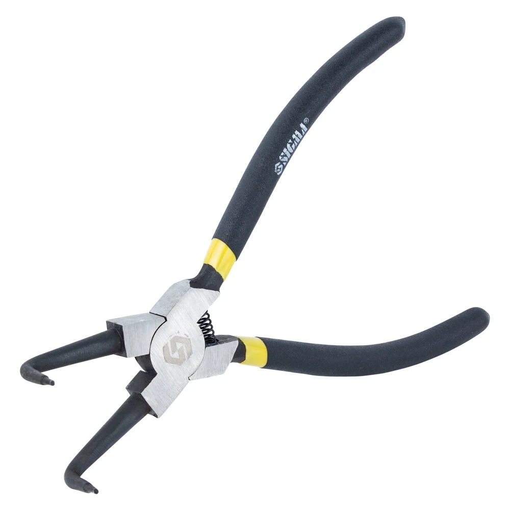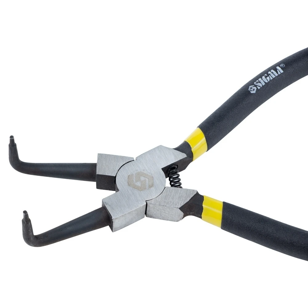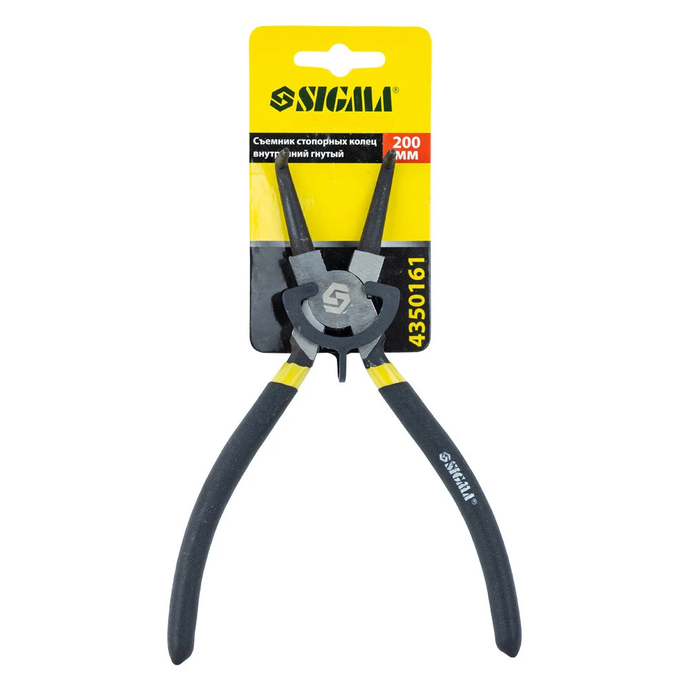 Знімач стопорних кілець 200мм (внутрішні гнуті) SIGMA (4350161) призначений для монтажу і демонтажу внутрішніх і зовнішніх стопорних кілець. Виготовлені з високовуглецевої інструментальної сталі, пройшли термічну обробку.